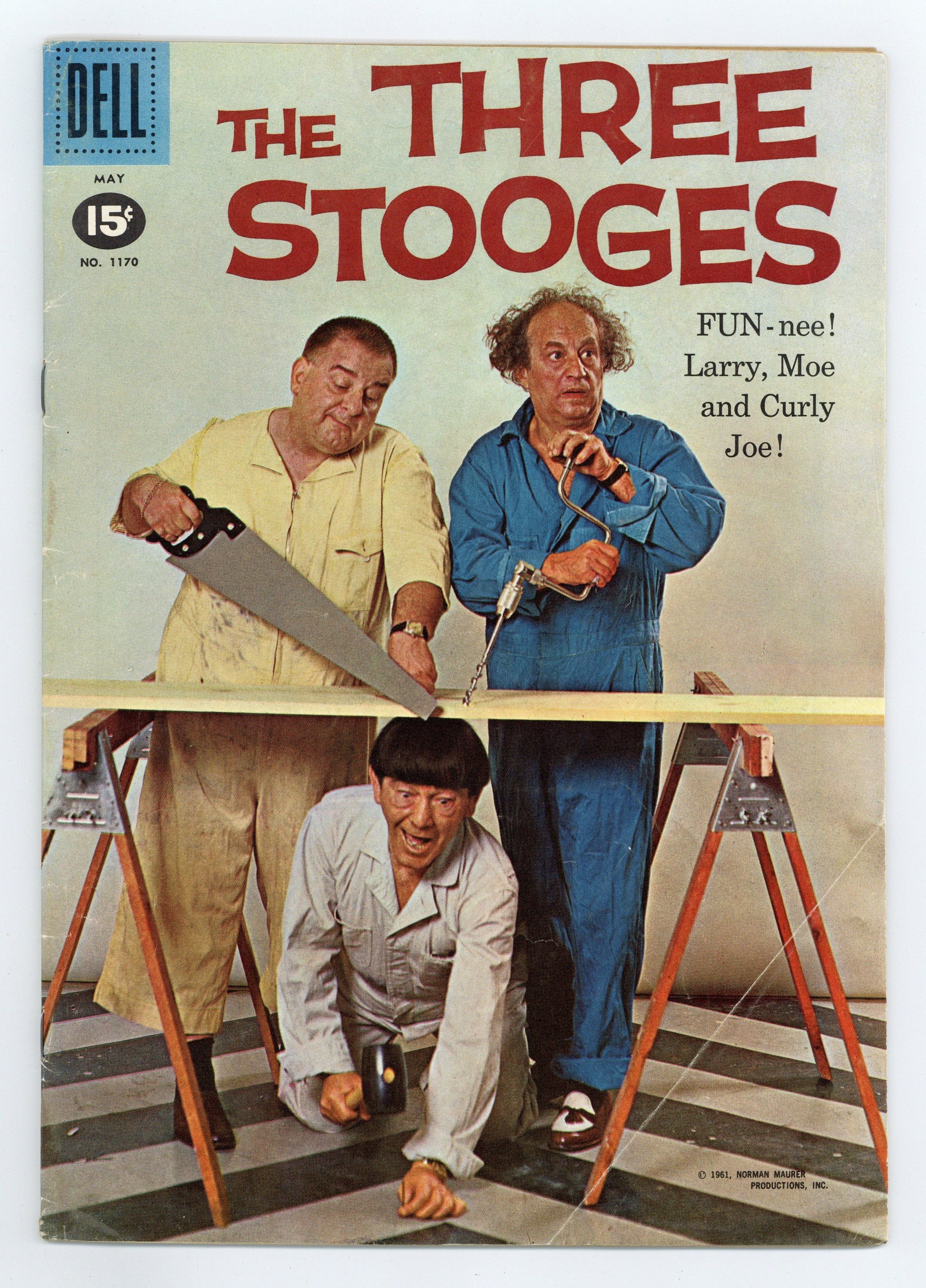 Indicia title is 'THE THREE STOOGES, No. 1170." Photo cover of The Three Stooges (Moe Howard, Larry Fine, and Curly Joe DeRita). Boobs in the Woods; The Stooges go to Red Rock National Park, where they cause chaos for the forest rangers. Midway Madness; Curly Joe becomes a lion tamer in a circus. Unspecial Delivery; Criminals posing as scientists pay the Stooges to deliver a package to Senator Carmichael. Something Fishy; Curly Joe is studying to be a magician. All art by Sparky Moore. Three Stooges Magic Foto Club/Three Stooges Fan Club ad. 36 pages, full color. Cover price $0.15.