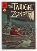 $47.00Version with ad on back cover. Indicia title is "THE TWILIGHT ZONE, No. 1173." Based on "The Twilight Zone" TV series. Painted cover art. Specter of Youth, script by Leo Dorfman, pencils by Reed Crandall and George Evans, inks by George Evans and Reed Crandall; A elderly merchant becomes rich by dealing in illegally obtained ancient artifacts; He receives a jar that supposedly contains a liquid that will give the gift of eternal youth. The Phantom Lighthouse, script by Leo Dorfman, art by Reed Crandall; On an ice-fishing trip to the Great Lakes, a father and his son find an old fisherman, who tells an odd story about needing to find his boat before a storm hits. Doom By Prediction, script by Leo Dorfman, pencils by Reed Crandall; Archie, a porter and handyman at an airport, seems to have the power of prophecy. Journeys into the Twilight Zone, pencils by George Evans; the possibilities of the existence of extra-sensory perception, telepathy, precognition, and psychometry. 36 pages, full color. Cover price $0.15.