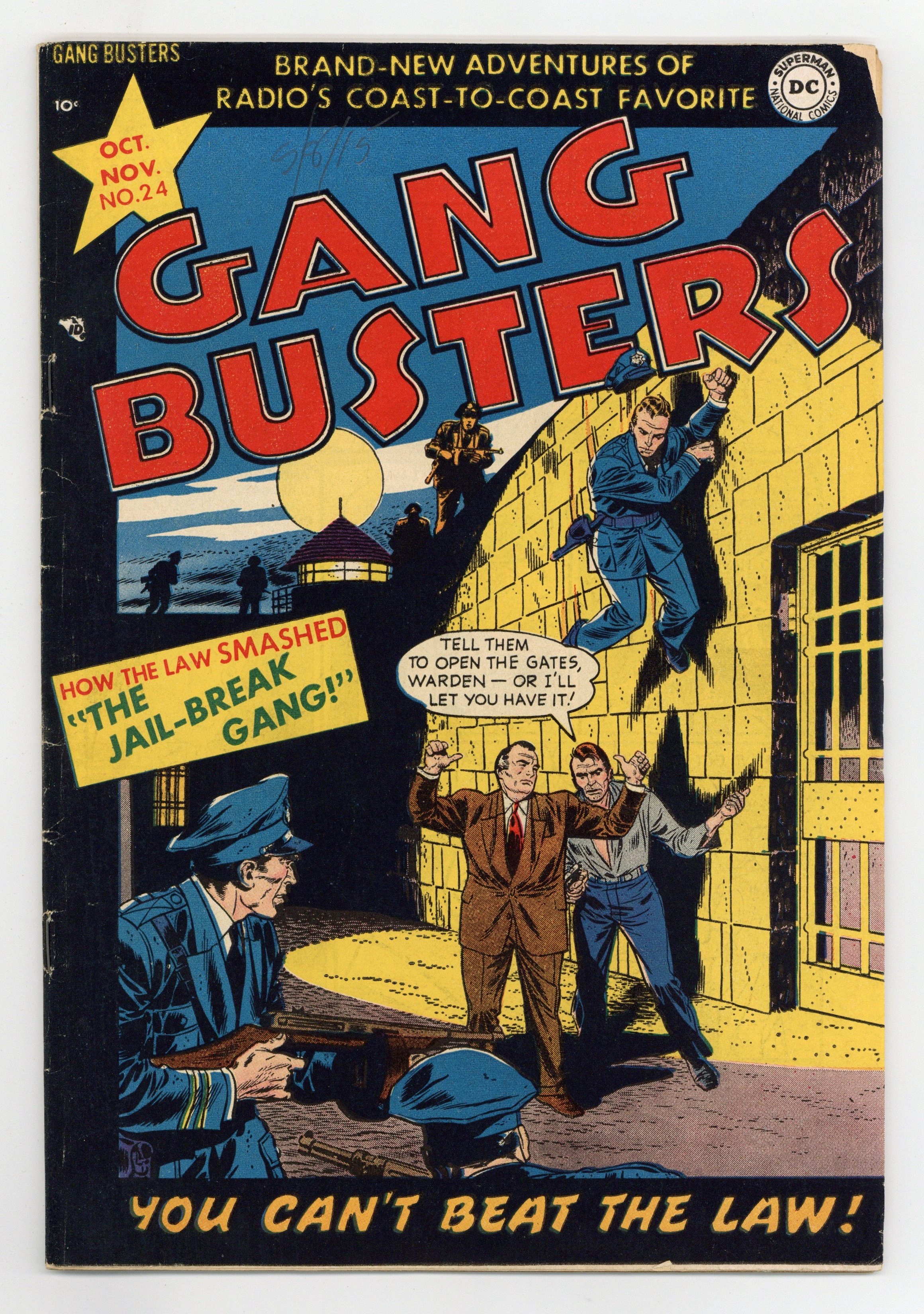 Cover art by Ruben Moreira. The Jail-Break Gang, art by Ruben Moreira. Circus Cop, art by John Prentice. The Case of the Sunset Alibi, art by Bill Ely. State's Witness, art by Sy Barry. 44 pgs. $0.10. Cover price $0.10.
