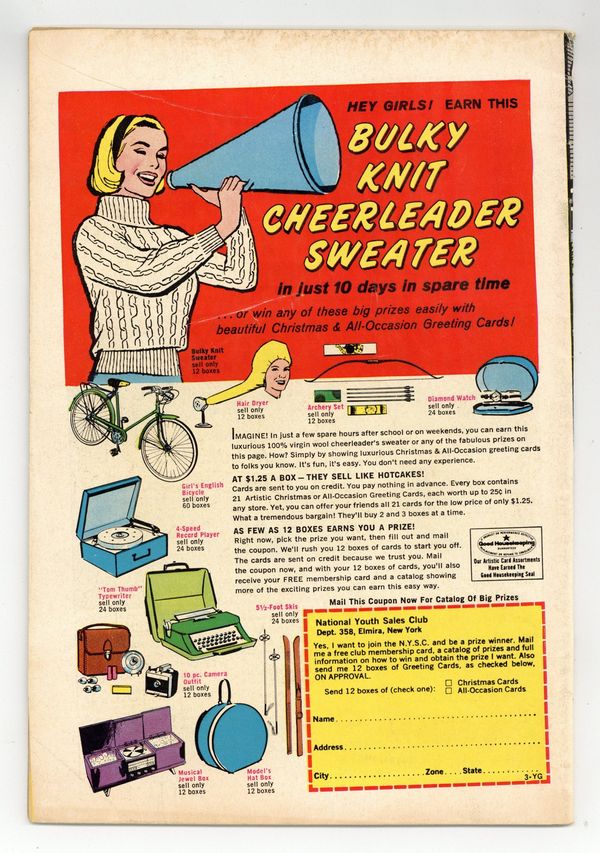 $48.00Featuring: 7 page story "Be Still, My Love" drawn by Bill Draut; 1 page Romance in Fashion story; 7 page story "I've Got a Right to be Happy"; 6 page story "The One Man for Me" drawn by Jay Scott Pike; 2 page From Barbara Miles, with Love letters page; 8 page story "Never Mine" written by Robert Kanigher and drawn by Werner Roth & John Romita, Sr. Cover pencils by John Romita, Sr. Cover price $0.12.