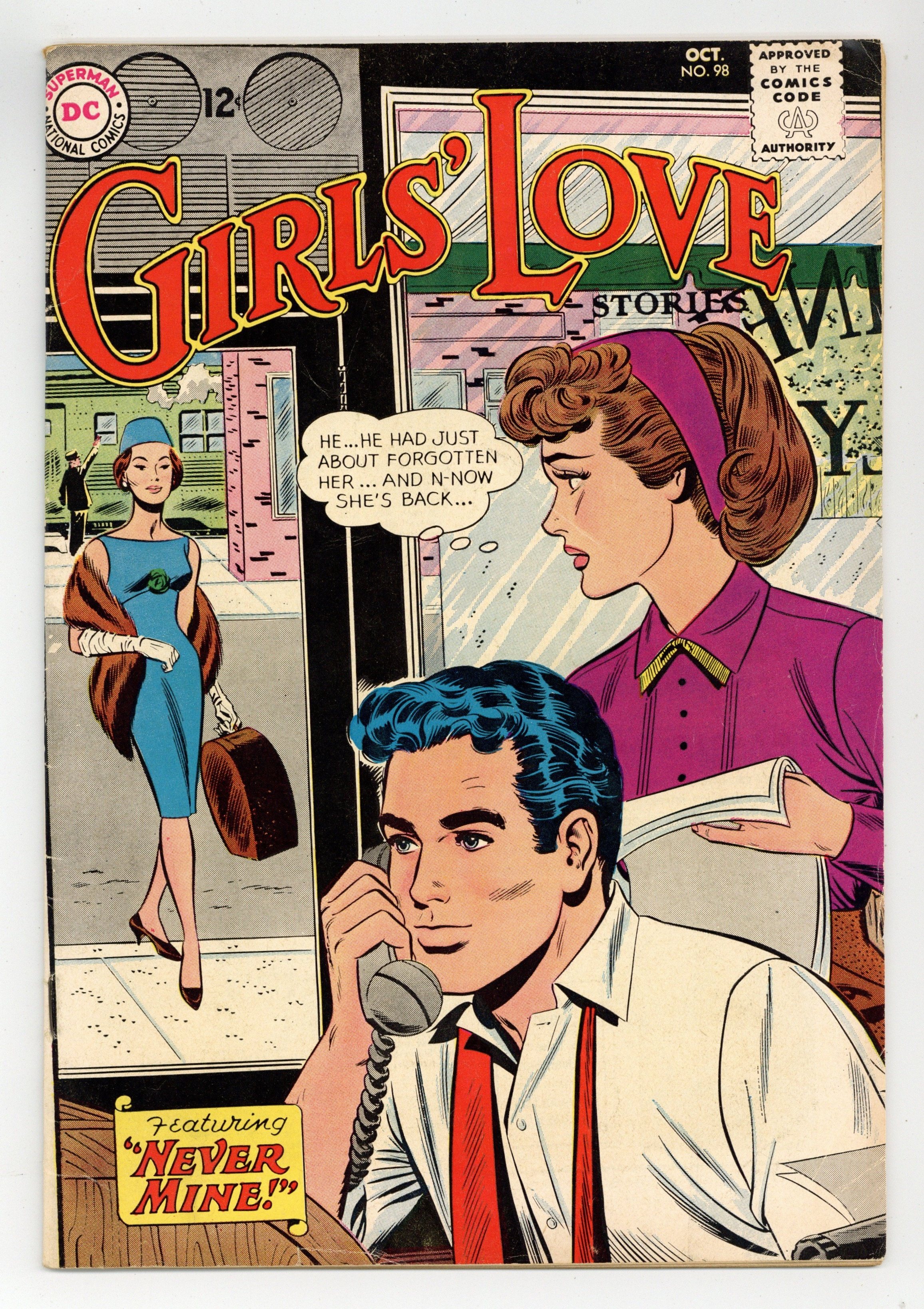 Featuring: 7 page story "Be Still, My Love" drawn by Bill Draut; 1 page Romance in Fashion story; 7 page story "I've Got a Right to be Happy"; 6 page story "The One Man for Me" drawn by Jay Scott Pike; 2 page From Barbara Miles, with Love letters page; 8 page story "Never Mine" written by Robert Kanigher and drawn by Werner Roth & John Romita, Sr. Cover pencils by John Romita, Sr. Cover price $0.12.