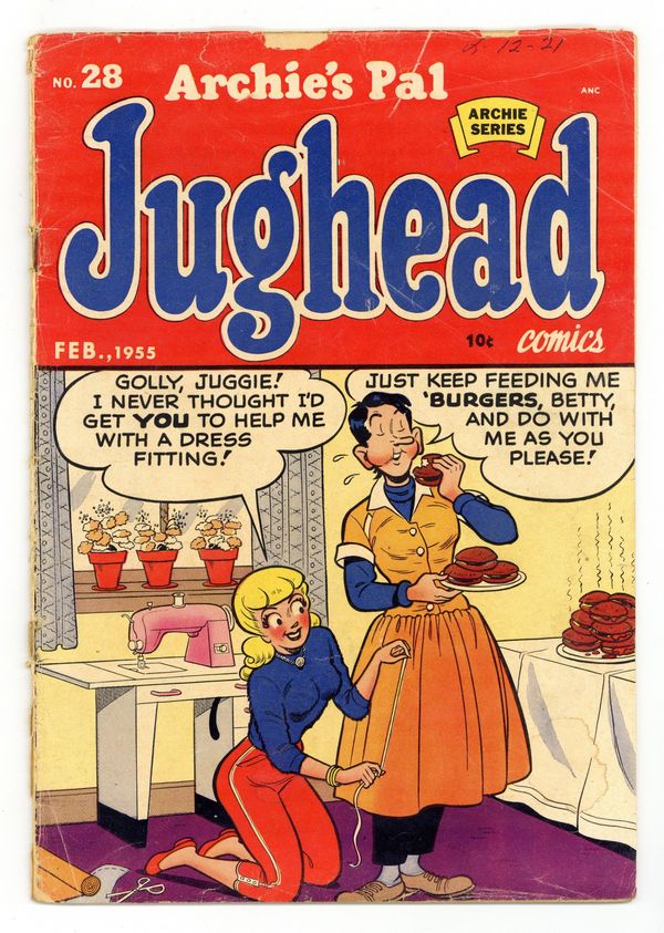 Worry Wart; Jughead charges Archie and Reggie to keep them out of detention; His plan to cover their books using paint backfires when Mr. Weatherbee grabs the still-wet books and gives Archie and Reggie a month of detention. Book Shnook; Reggie makes fun of Jughead working in a book shop, but he finds something interesting in one of the books, what appears to be a personal note from William Shakespeare to Marc Antony, the subject of the play. Two Pages from Debby's Diary; Debby helps her mother clean the attic and discovers her mother's old diary. "Balance of Power"; Reggie thinks he's fooled Jughead by out-balancing him using a Thermos bottle to balance on his head and only dropping it three times. "If the Shoe Fits"; Reggie is the judge at a Cinderella dance, where the girl whose foot fits his shoe will win a dArchie wants to buy perfume for his girlfriend, but when the salesman learns Archie has only two dollars, he kicks him out of the store.ate of her choice at the nicest restaurant in town. "There Are Smells That Make Us Happy"; 36 pgs., full color. Cover price $0.10.
