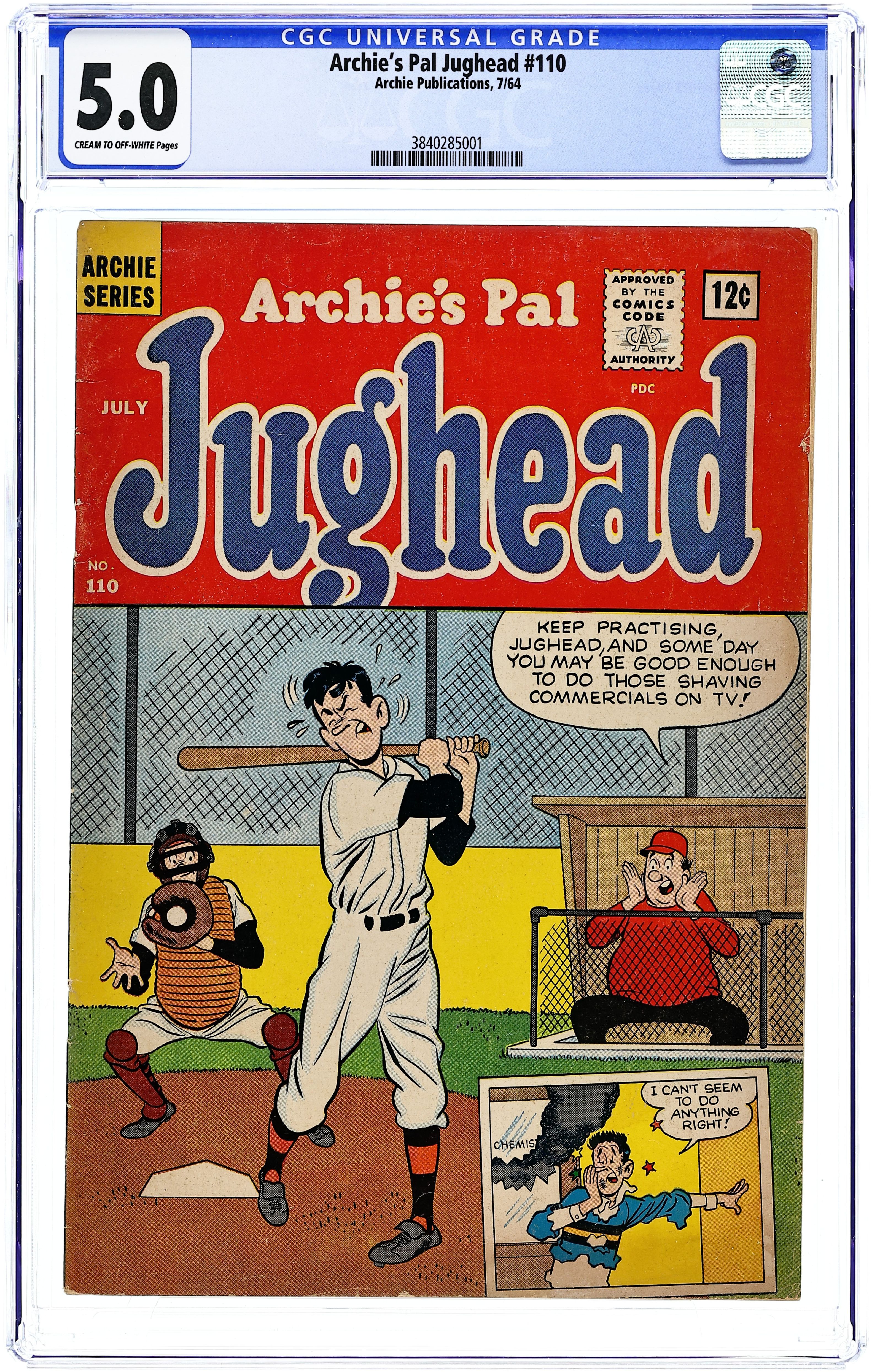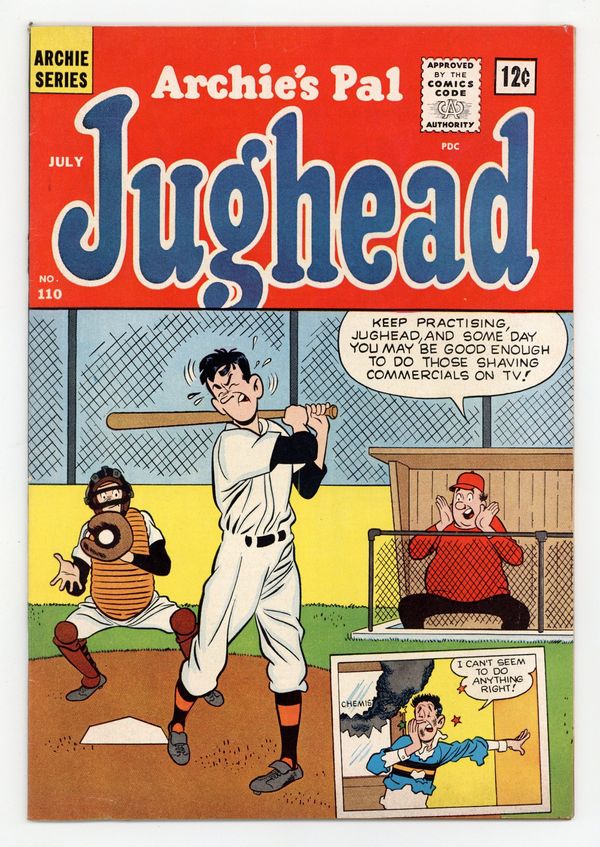 Cover by Samm Schwartz. "The Catalyst," art by Samm Schwartz; Jughead's chemistry teacher says he's a catalyst causing reactions between people; As he walks through the hallways explaining the idea to Archie, everyone he passes gets into an argument. "Whether Or Not" one-page Li'l Jinx story by Joe Edwards. "Litter Perfect," art by Samm Schwartz; Reggie sees Jughead putting the lid on a trash can and Jughead says he lost fifty dollars; Reggie keeps trying to dig through the garbage. "Bread and Batter," art by Samm Schwartz; Pop kicks Jughead out for creating a hamburger that's two-feet long; Outside the shop, he uses the over-sized sandwich to beat a hoodlum. "Photo Finished," art by Samm Schwartz; Jughead realizes he isn't in the grade school photo so he tries to find his graduation certificate. 36 pgs., full color. Cover price $0.12.