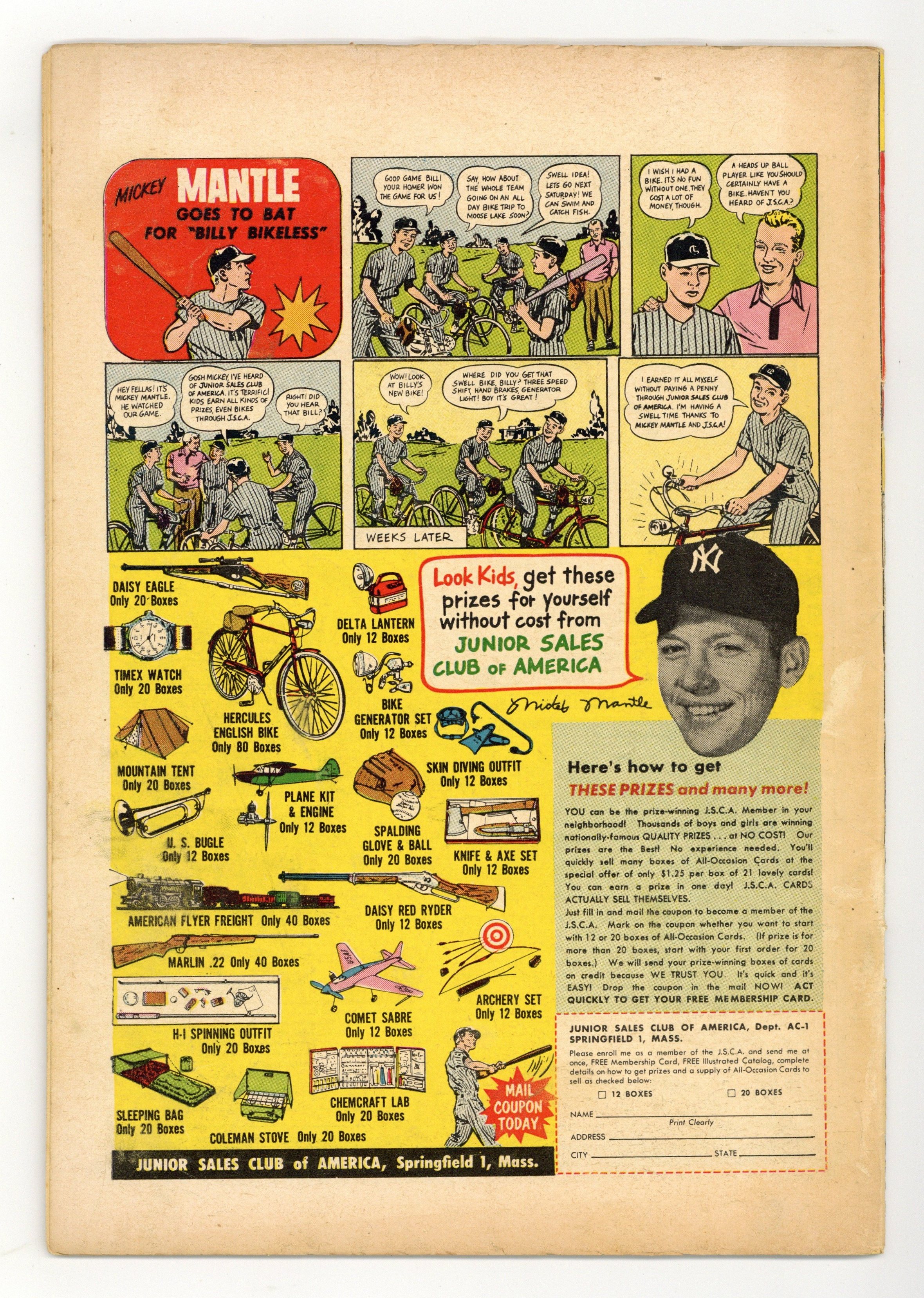 "Policed to Meet You," art by Samm Schwartz; Veronica asks Archie to drive her father home from the train station as a means of occupying Mr. Lodge so they can prepare his surprise birthday party. "Hot Dog," script by Bill Woggon, pencils by Bill Woggon and Hazel Marten, inks by Hazel Marten and Kathryn Bill; Kayo accidentally ingests glue and can't keep a date with Katy. Katy Keene Fashions page, pencils by Bill Woggon and Hazel Marten, inks by Kathryn Bill. Katy Keene Fun Page, script by Bill Woggon, pencils by Bill Woggon and Hazel Marten, inks by Kathryn Bill. "Going, Going, Gown," pencils by Dan DeCarlo, inks by Rudy Lapick; Veronica refuses to wear a three hundred dollar gown her father bought her to the formal because Betty is going to wear a $12.98 copy. "No Kittens," art by Joe Edwards; Slats challenges Red to a race between his dog and Red's cat, not knowing Red's cat is a full grown cheetah. "Clock Watchers," script and art by Joe Edwards; Hap buys Jinx a play watch that doesn't actually keep time. 36 pgs., full color. Cover price $0.10.