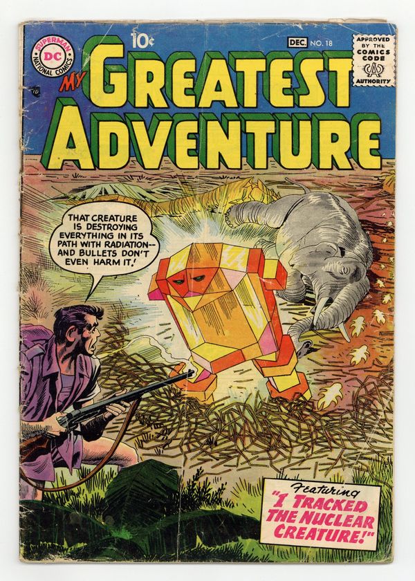 "We Discovered the Edge of the World" (art by Nick Cardy), "I Was a Prisoner in the House of Secrets," "Galloping Ghost," "I Tracked the Nuclear Creature" (pencils by Jack Kirby), and a one-page text story, "Mystery of the Spectral Lights." Kirby cover. 36 Pages, Full Color. Cover price $0.10.