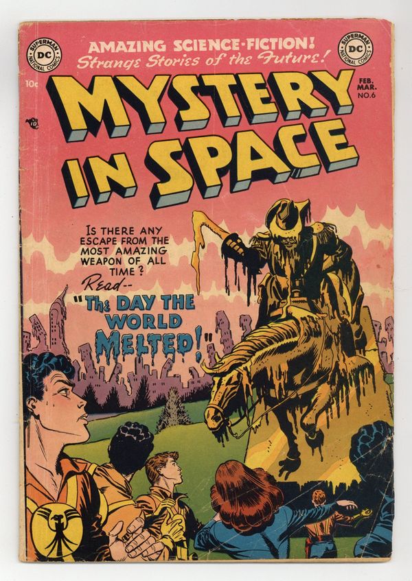Knights of the Galaxy in "The Day the World Melted" (script by Robert Kanigher as "Dion Anthony," pencils by Carmine Infantino?), "The Boy Who Saved the Earth" (script by "John Osgood"), "The Man Who Hated Science" (script by Jack Miller), and "Cowboy on Mars" (script by "Manny Rubin"). One-page Tootsie Roll ad, "Captain Tootsie and the Radar Rescue." 36 Pages, Full Color. Cover price $0.10.