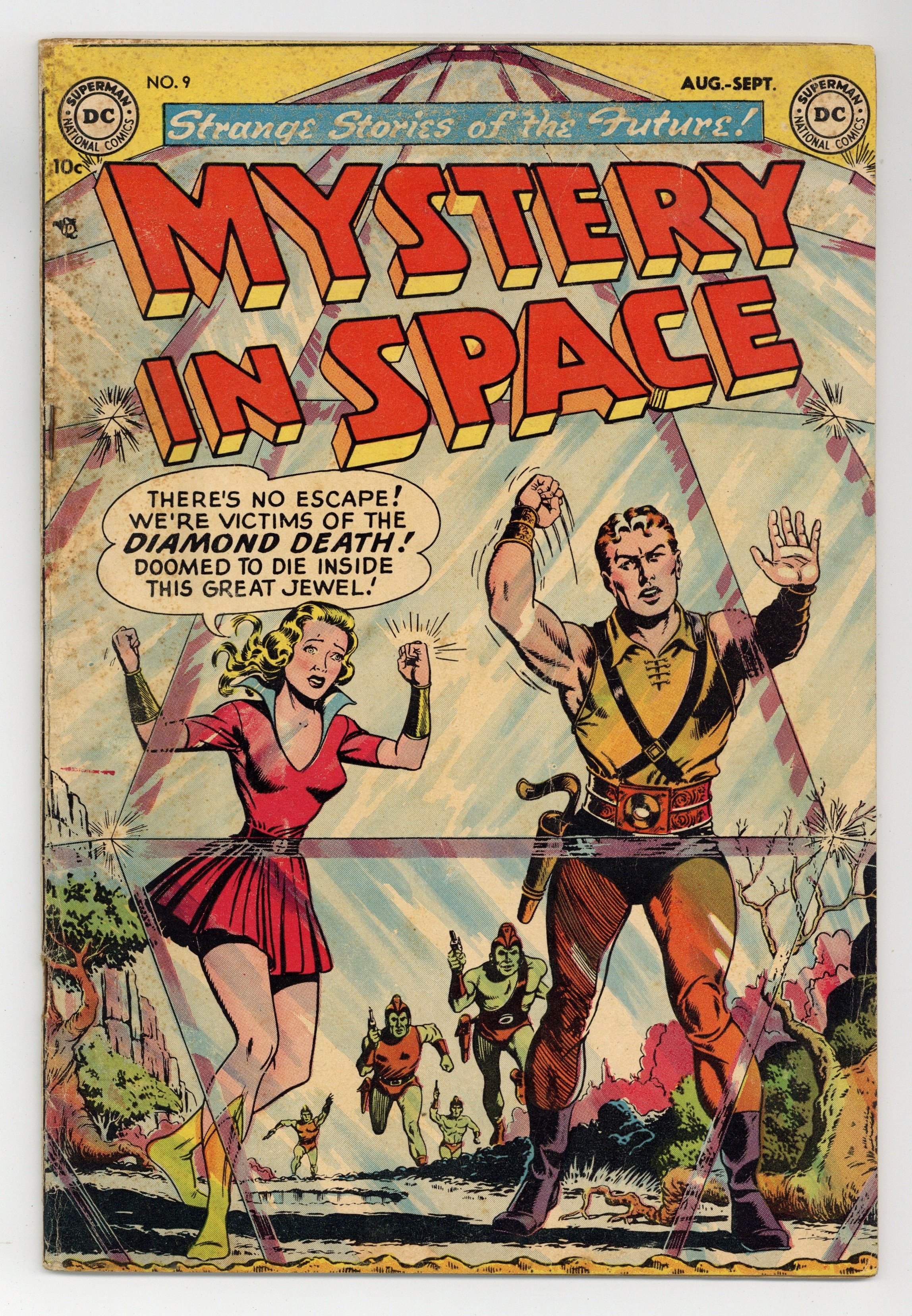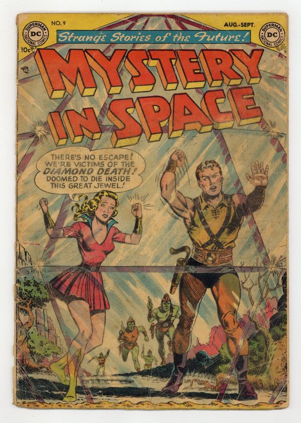 "The Seven Wonders of Space" (script by John Broome as "Robert Starr"), "The Perfect Planet" (script by Gardner F. Fox), "The Meteor of Revenge" (script by Jack Miller), and "The Martian Horse" (script by "Manny Rubin"). Murphy Anderson art. Ad for Phantom Stranger 1. Superman stars in a one-page public service announcement, "It's Smart to Check and Doublecheck!" Anderson cover. 36 Pages, Full Color. Cover price $0.10.