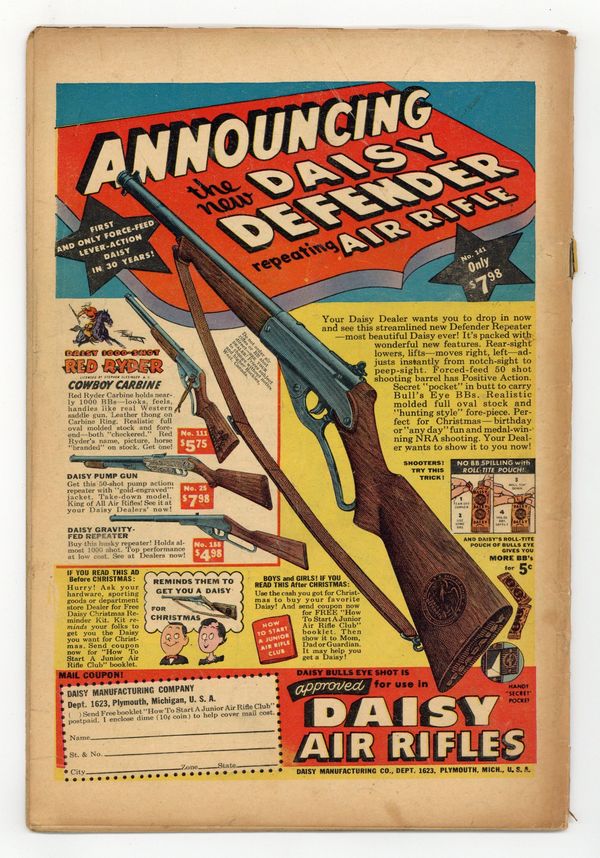 "The Sword in the Sky" (art by Murphy Anderson), "The Richest Man on 9 Planets," "The Human Mangnet" (pencils by Gil Kane), and "The Great Stone Faces on the Moon!" Superboy stars in a one-page public service announcement, "The Holiday Spirit." Ruben Moreira cover? 36 Pages, Full Color. Cover price $0.10.