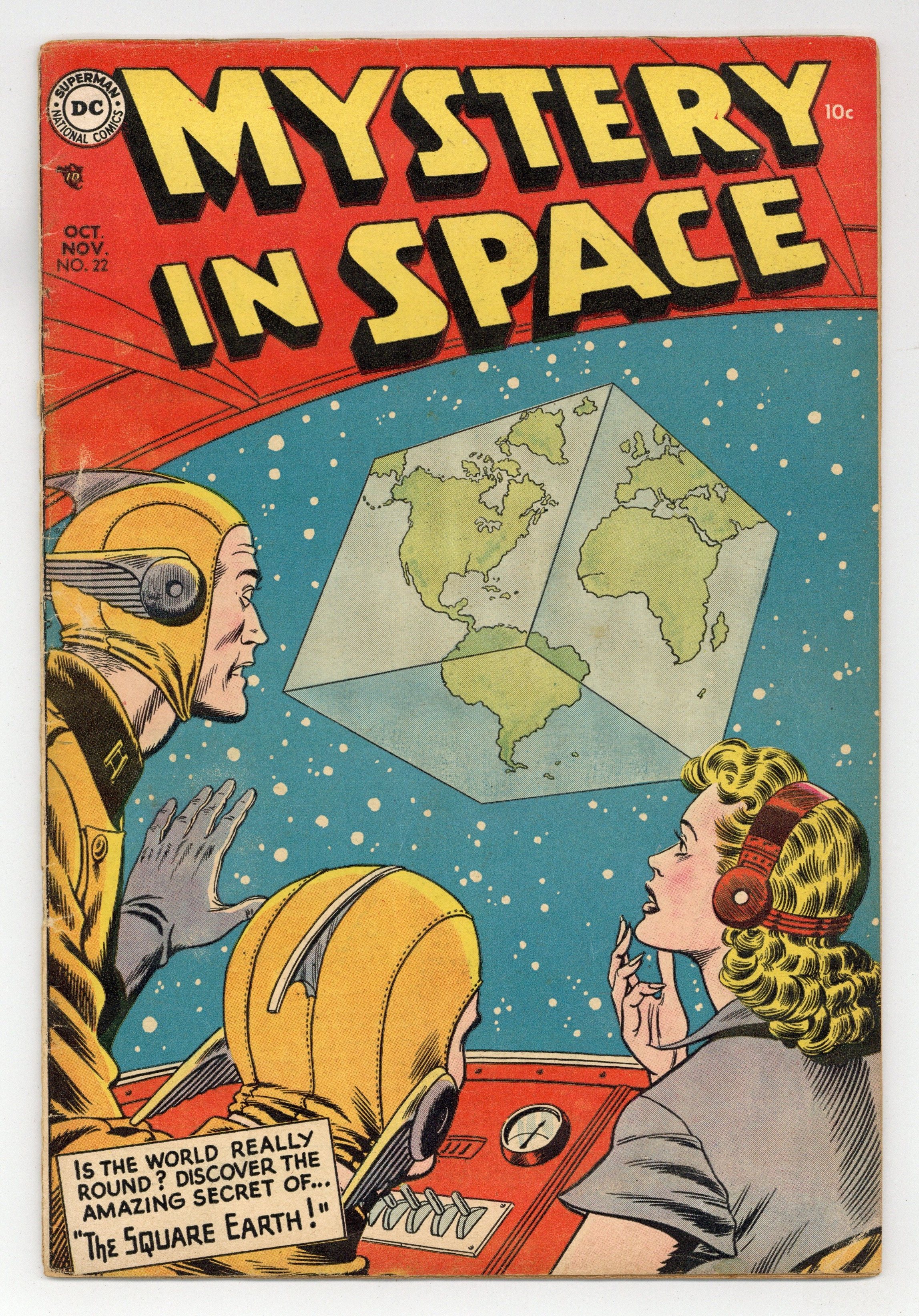 "The Square Earth" (Written by Otto Binder, art by Sy Barry), "The Men Who Bombed the Sun!" (pencils by Gil Kane), "The Venus Sky-Trap," and "Rescue Through the Fourth Dimension!" (art by Carmine Infantino). Cubed Earth cover by Murphy Anderson. 36 Pages, Full Color. Cover price $0.10.