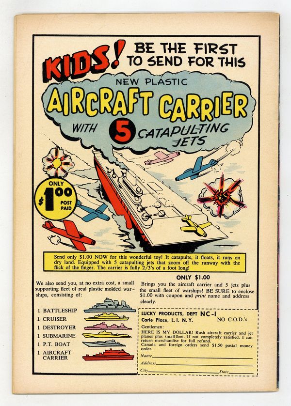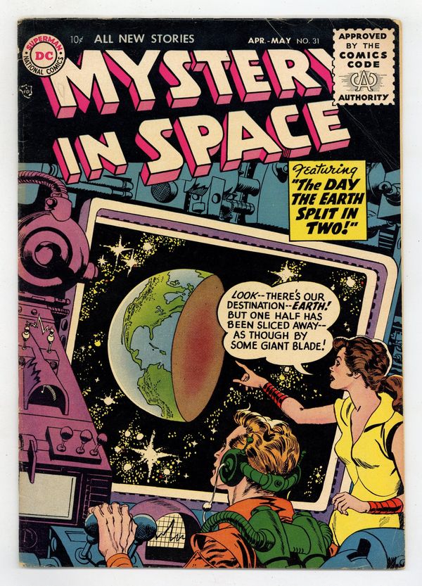 "The Day the Earth Split in Two." Secret of the Scientific Doodads" (art by Carmine Infantino), "Search for the Space Sparklers" (pencils by Gil Kane), and "The Robot Magician." Quarter-page Fearless Fosdick ad for Wildroot Cream-Oil by Al Capp. Kane cover. 36 Pages, Full Color. Cover price $0.10.