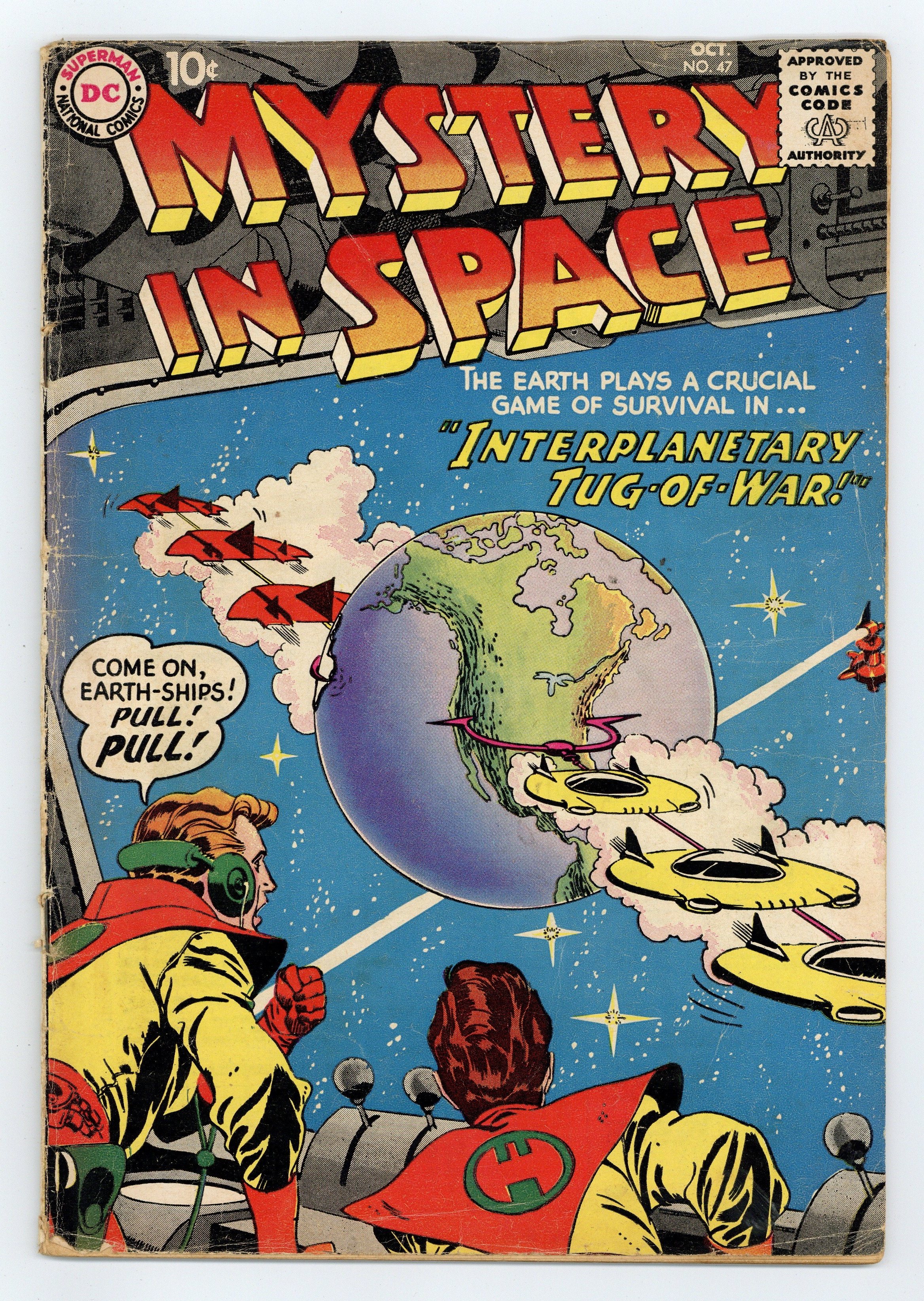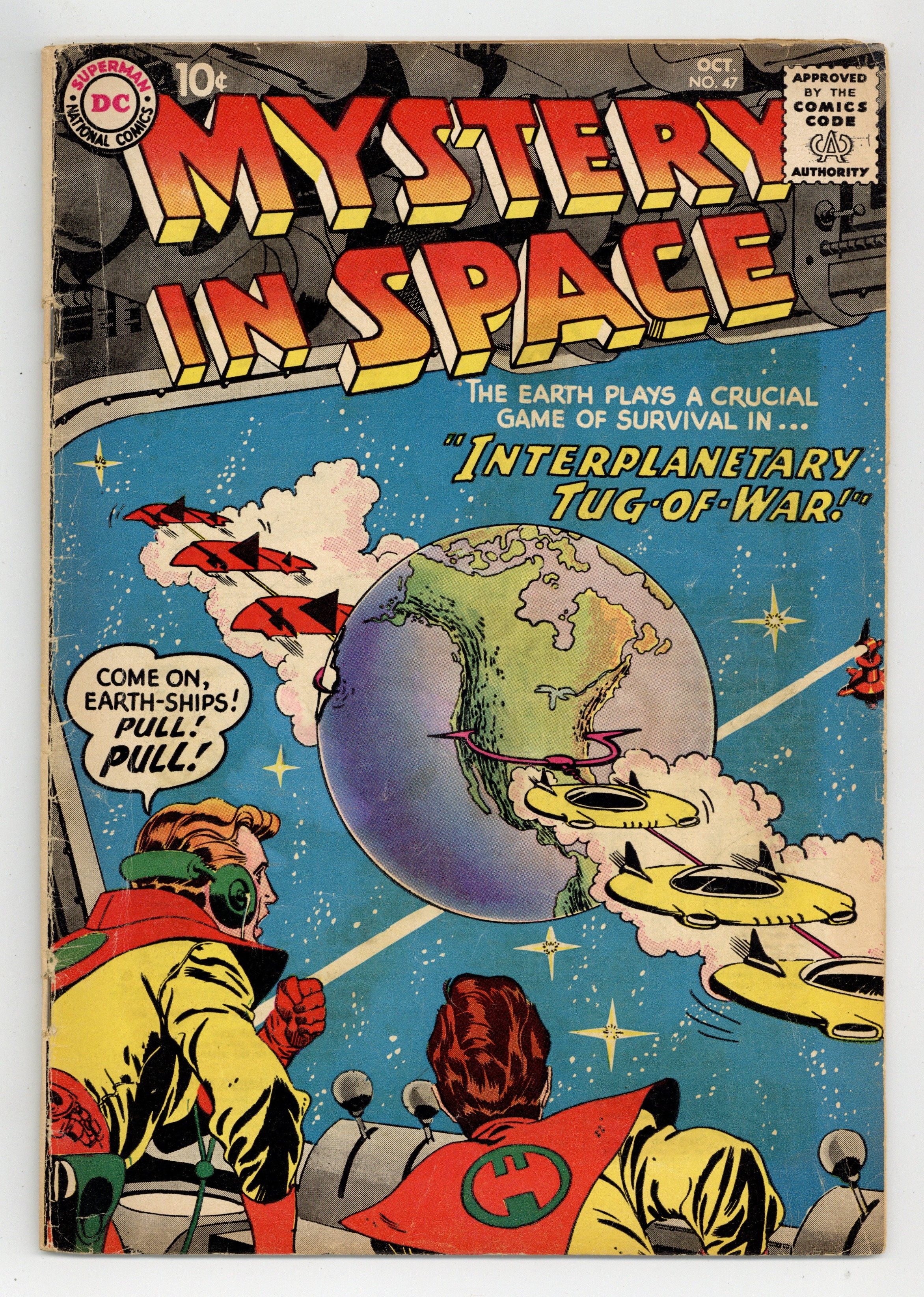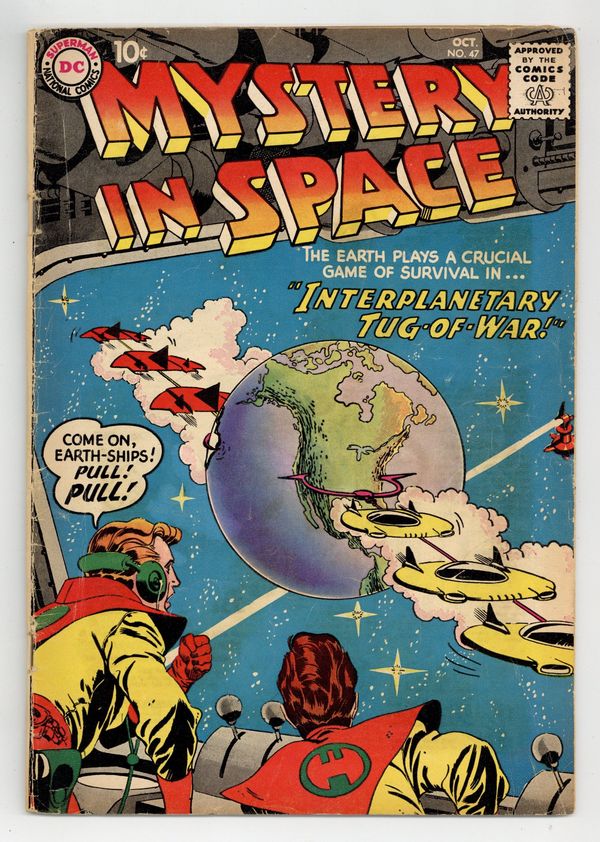 "Interplanetary Tug of War"; "The Surprise Package Planet!" (art by Murphy Anderson); and "The Riddle of the Rival Space-Cabbies!" (pencils by Gil Kane). Kane cover. 36 Pages, Full Color. Cover price $0.10.
