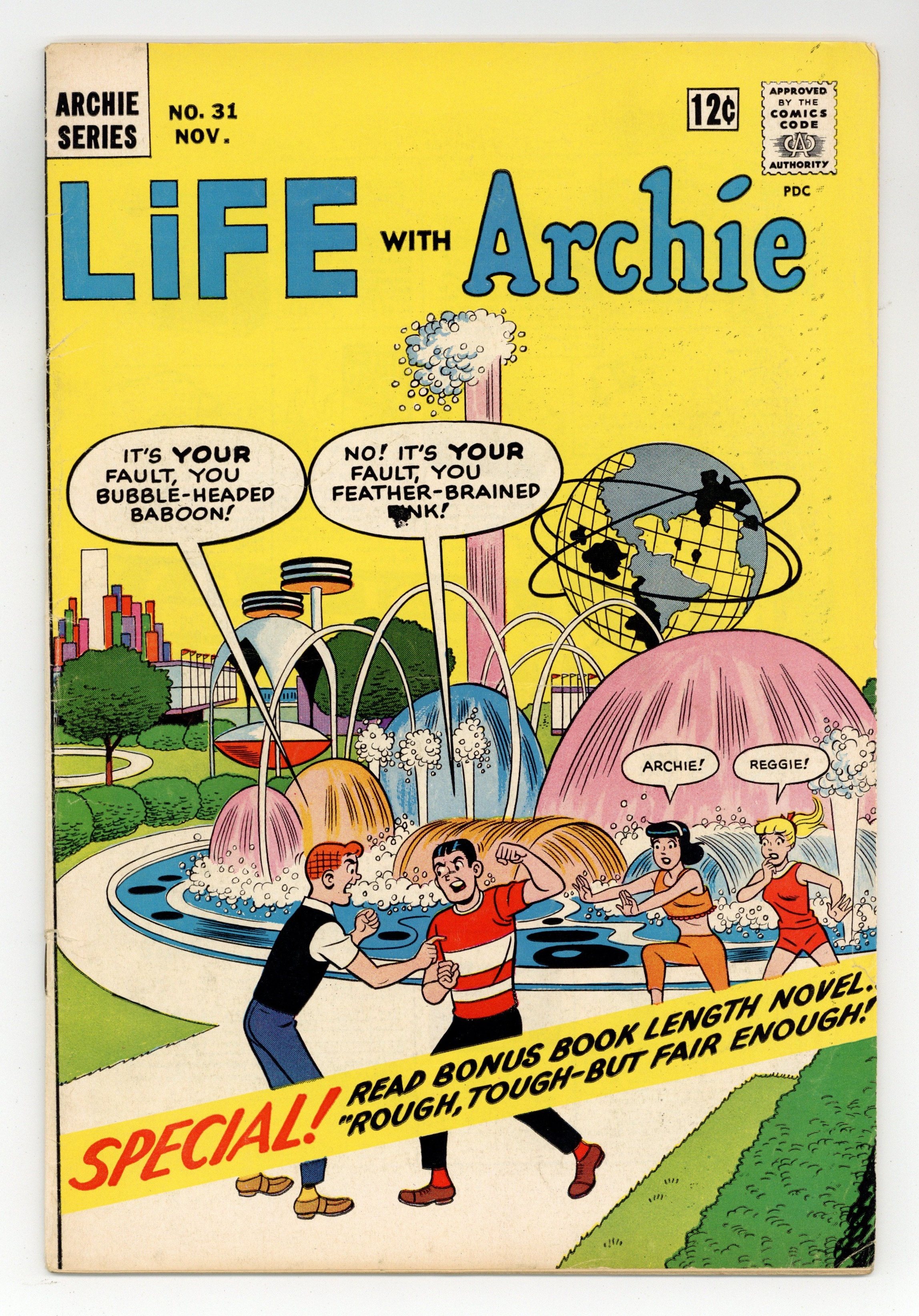 Cover art by Bob White. Book-length story in four chapters: "Symbol Simon," "Fair Enough," "Midway Madness" and "Guided Guys," pencils by Bob White, inks by Marty Epp; After the gang wins a trip to the 1964 World's Fair, the boys have to save Betty and Veronica when they're in an out-of-control cab with an insane driver. 36 pgs. $0.12. Cover price $0.12.