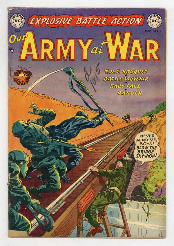 Cover art by Irv Novick. Battle Souvenir, script by Bob Kanigher, pencils by Irv Novick, inks by Bernard Sachs. Baby Face, script by Hal Kantor, pencils by Bob Oksner, inks by Bob Lander. T.N.T. Bouquet, script by John Reed, pencils by Gene Colan, inks by Sy Barry. Ranger, script by David Kahn, art by Eugene Hughes. 36 Pages, Full Color. Cover price $0.10.