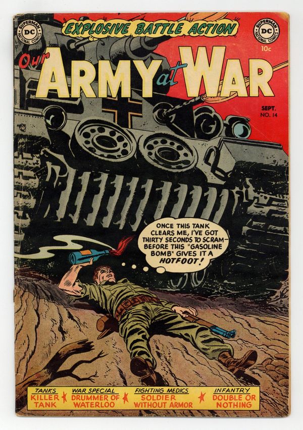 Cover art by Jerry Grandenetti. Drummer of Waterloo, script by William Woolfolk, art by Bernie Krigstein. Double or Nothing, script by David Kahn, pencils by Gene Colan, inks by Joe Giella. Soldier Without Armor, script by William Woolfolk, pencils by Ross Andru, inks by Mike Esposito. Killer Tank, script by William Woolfolk, pencils by Jerry Grandenetti, inks by Joe Giella. 36 Pages, Full Color. Cover price $0.10.