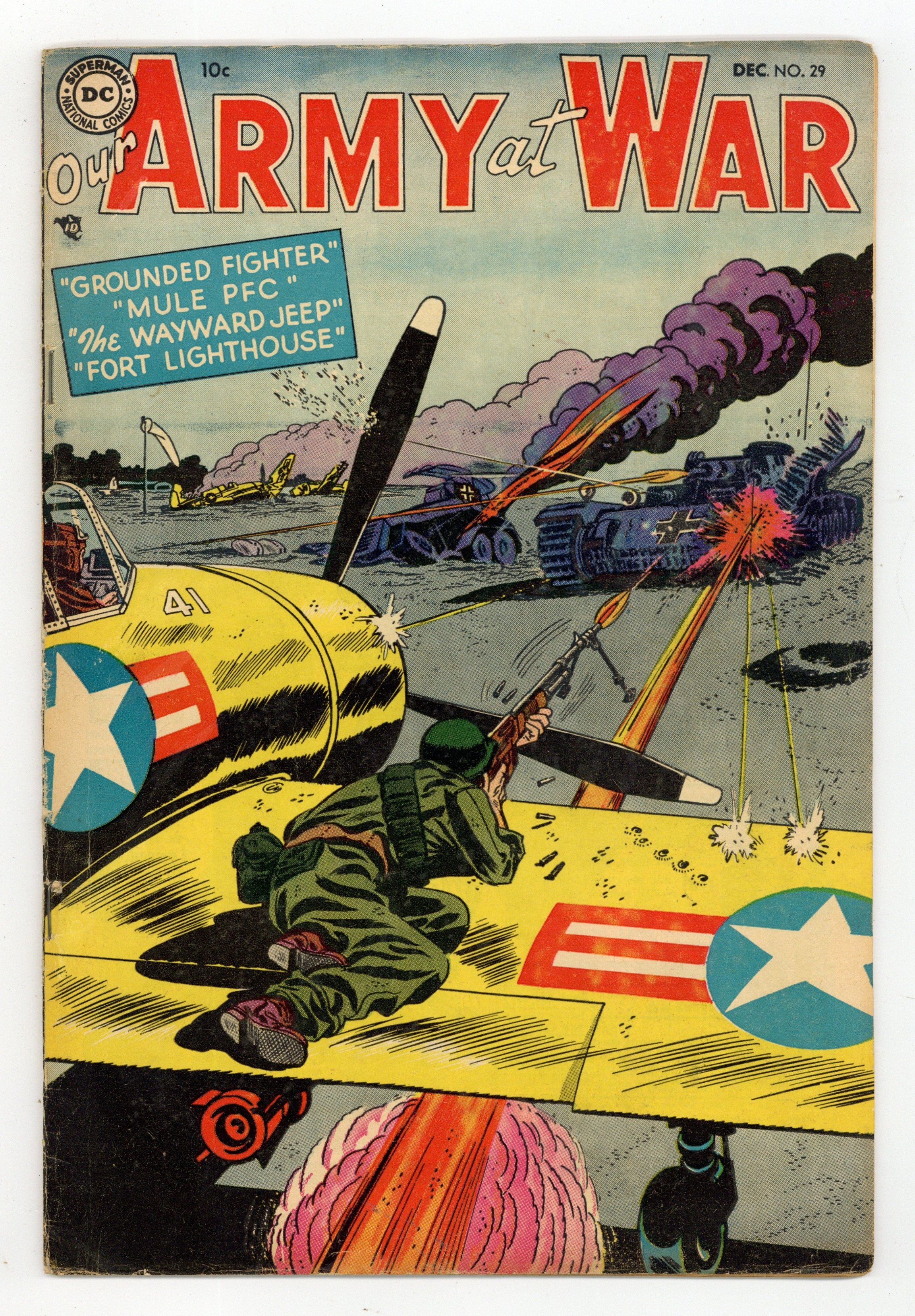 Cover art by Irv Novick. Grounded Fighter, script by Bob Kanigher, art by Russ Heath. Mule PFC, script by Bob Kanigher (as Causin), pencils by Howard Purcell, inks by Joe Giella. The Wayward Jeep, script by Ed (France) Herron, art by Mort Drucker. Fort Lighthouse, script by John Reed, pencils by Sam Burlockoff, inks by Joe Giella. 36 Pages, Full Color. Cover price $0.10.