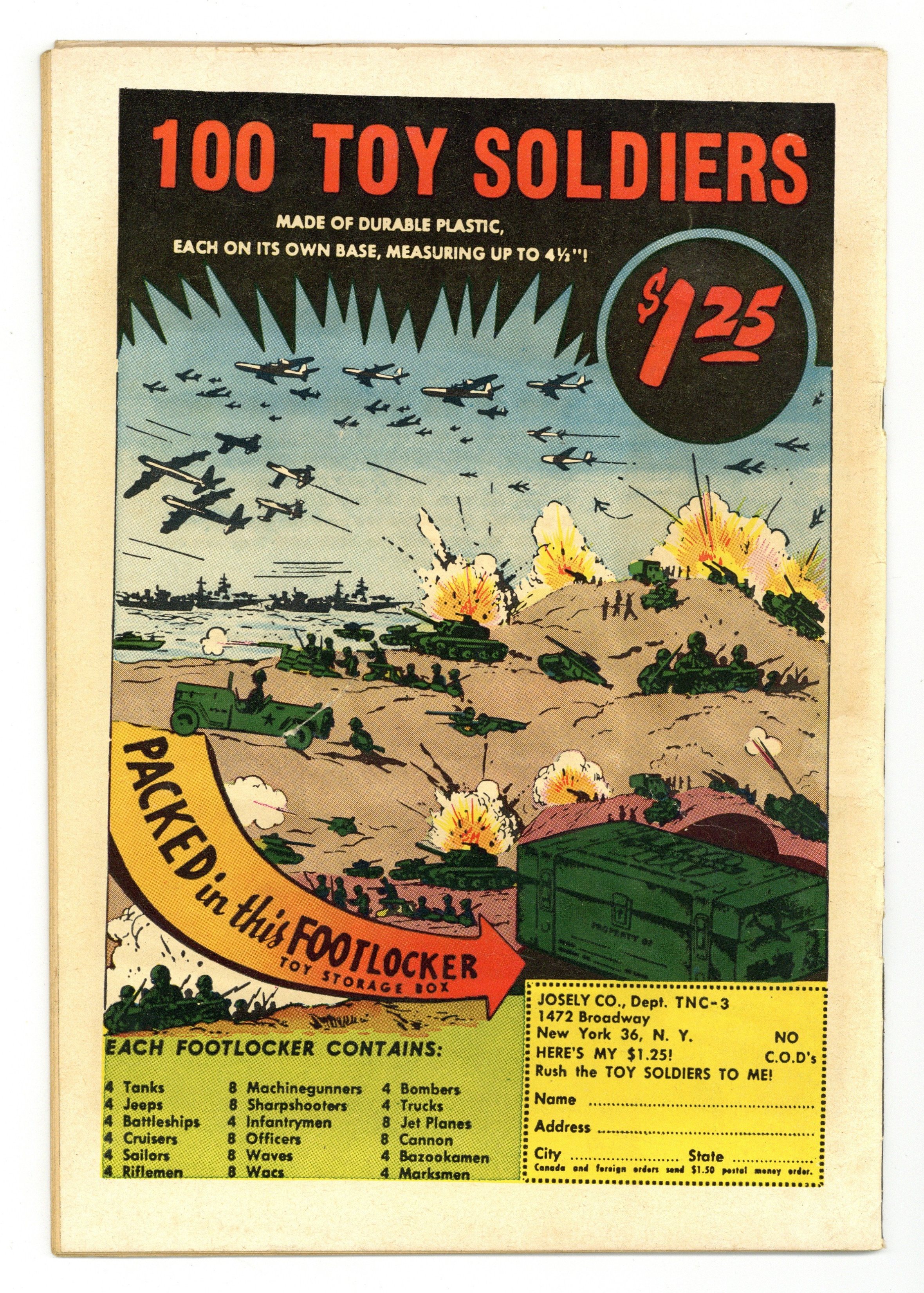 Cover art by Jerry Grandenetti. Untitled story, script by Bob Kanigher, art by Jerry Grandenetti. The Silent Sergeant, script by Bob Haney, art by Jack Abel. Sweep Your Alley, script by Bill Finger, pencils by Ross Andru, inks by Mike Esposito. Battle Zoo, script by Jack Miller, art by Joe Kubert. 36 Pages, Full Color. Cover price $0.10.