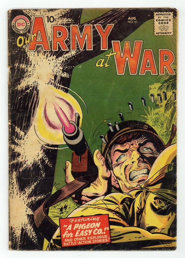 Cover art by Jerry Grandenetti. Untitled story, script by Bob Kanigher, art by Joe Kubert. Sgt. Time, script by Ed (France) Herron, pencils by Jerry Grandenetti, inks by Robert Stuart. The Green Gun, script by Bob Haney, art by Jack Abel. Battle Sun, script by Bob Haney, art by Russ Heath. 36 Pages, Full Color. Cover price $0.10.