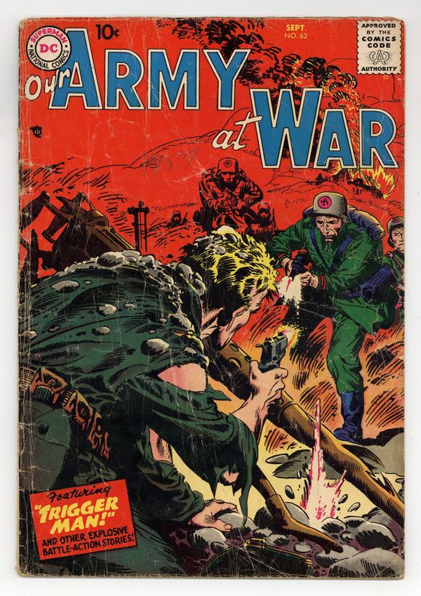 Cover art by Joe Kubert. Untitled story, script by Bob Kanigher, art by Jerry Grandenetti. Fence Fighter, script by Bob Haney, art by Jack Abel. Mile-Away War, script by Bill Finger, pencils by Ross Andru, inks by Mike Esposito. The Battle Key, script by Bob Haney, pencils by Jerry Grandenetti, inks by Robert Stuart. 36 Pages, Full Color. Cover price $0.10.