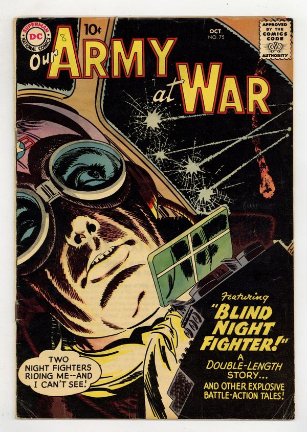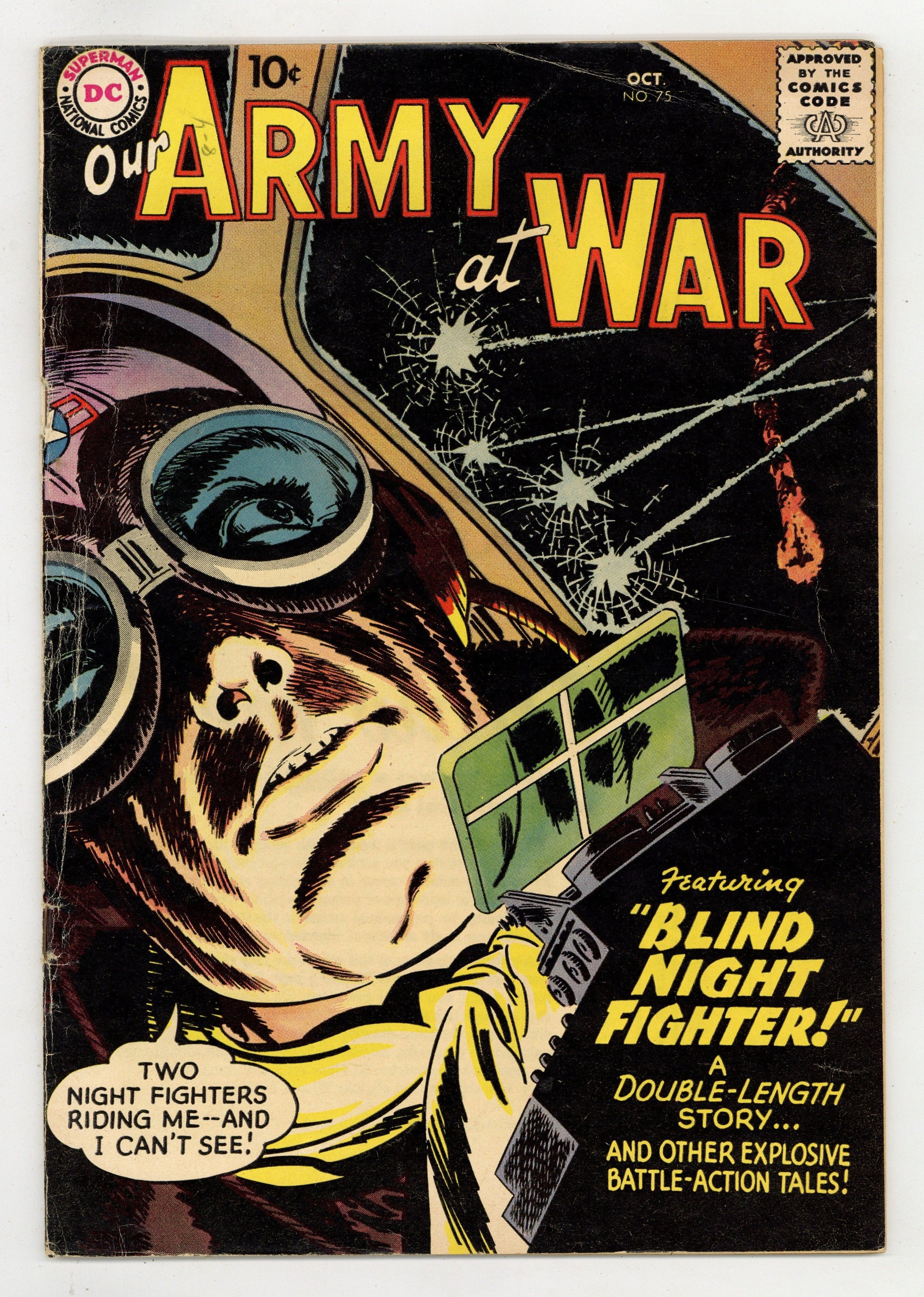 Cover art by Jerry Grandenetti. Blind Night Fighter, script by Bob Kanigher, art by Joe Kubert. Steel Hedgerow, script by Ed (France) Herron, pencils by Ross Andru, inks by Mike Esposito. Field Strip, script by Ed (France) Herron, art by Jack Abel. 36 Pages, Full Color. Cover price $0.10.