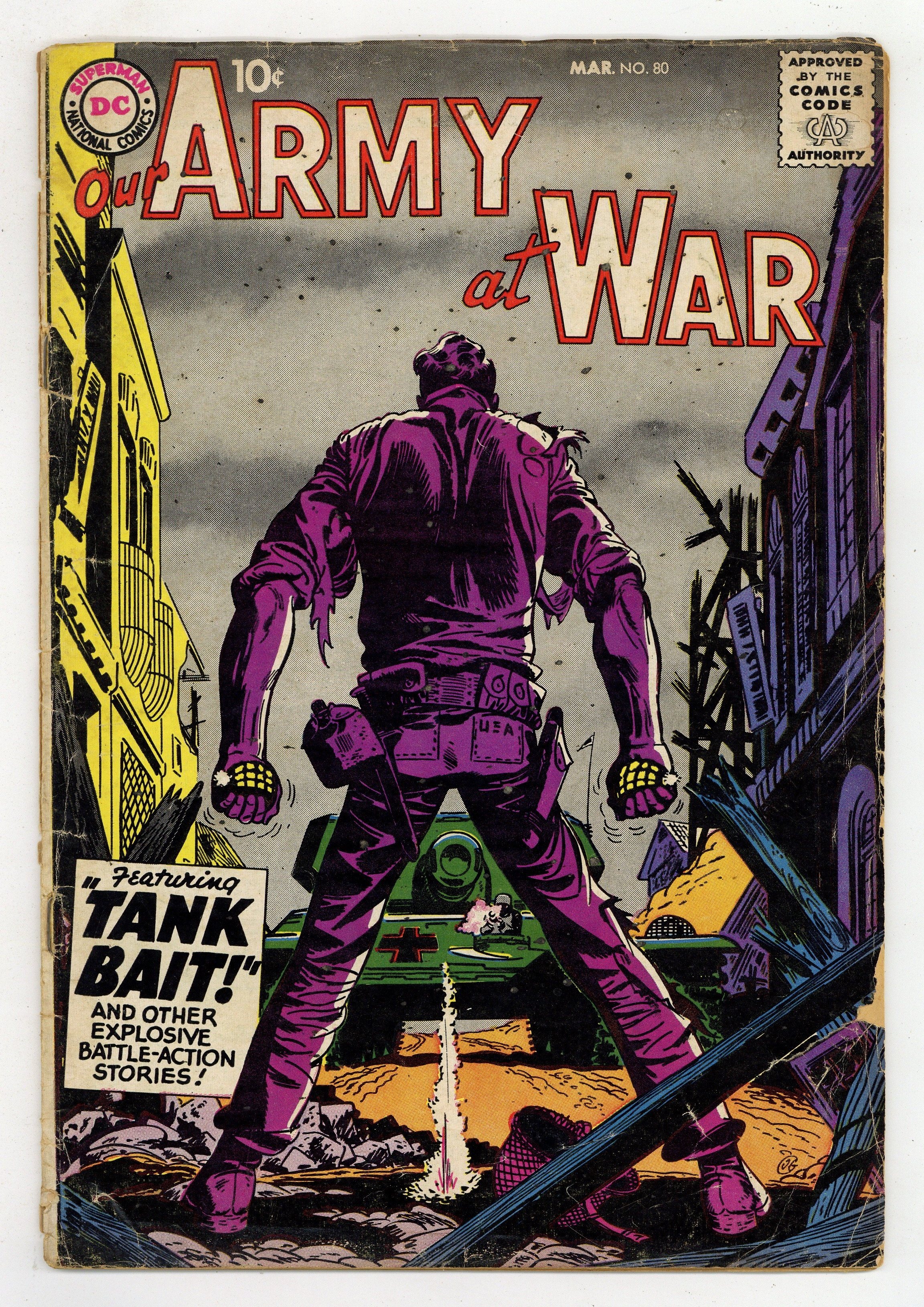 Cover art by Jerry Grandenetti. The Sparrow and the ...Hawk!, script by Bob Kanigher, art by Russ Heath. Tank Bait, script by Bob Kanigher, art by Jerry Grandenetti. Fit For A Fighter, script by Bob Haney, art by Jack Abel. 36 Pages, Full Color. Cover price $0.10.