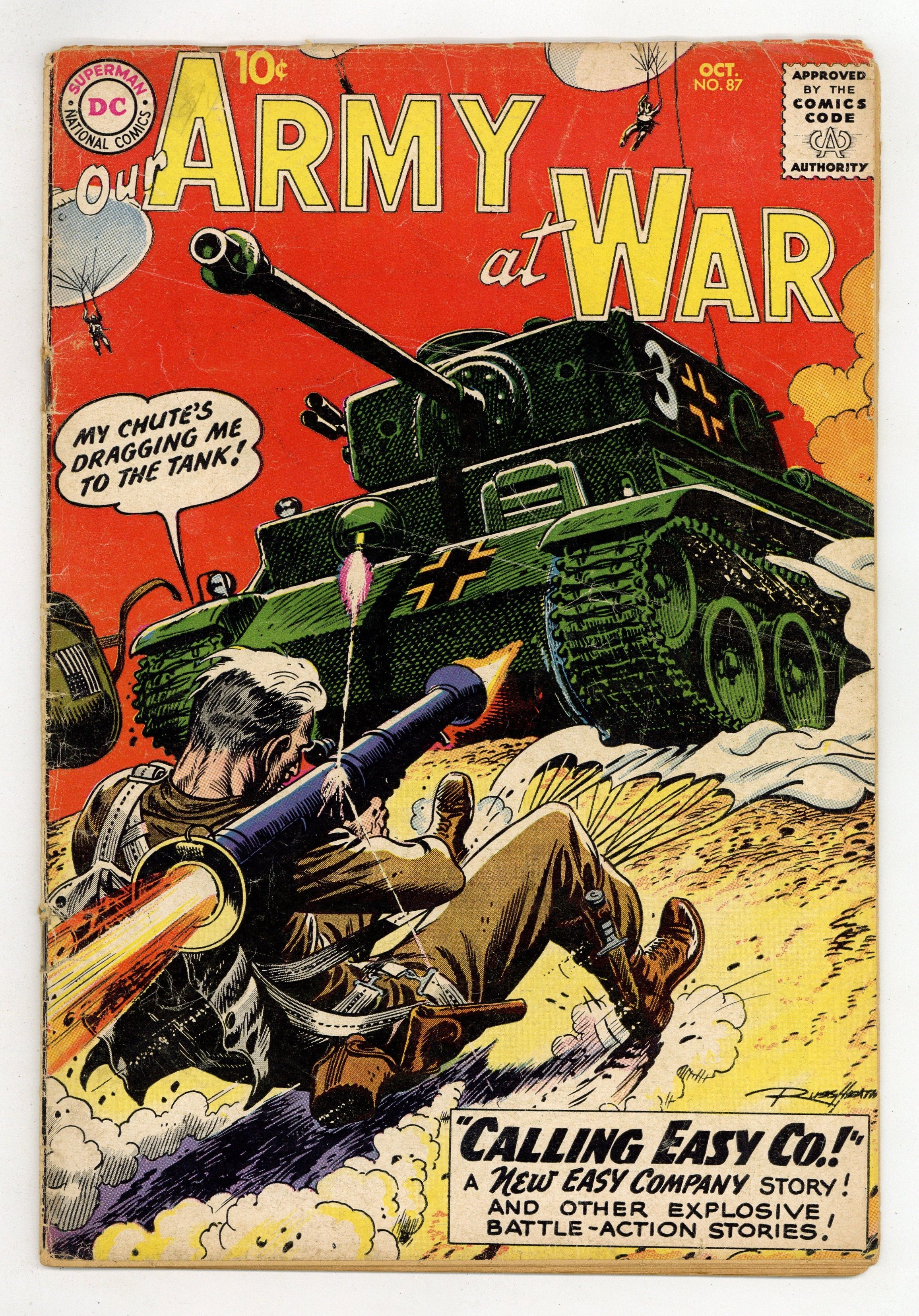 Cover art by Russ Heath. Calling Easy Co.! starring Sgt Rock, script by Bob Kanigher, art by Joe Kubert. Tiger Twister, script by Bob Haney, art by Mort Drucker. Worm's-Eye War, script by Bob Haney, art by Russ Heath. 36 Pages, Full Color. Cover price $0.10.