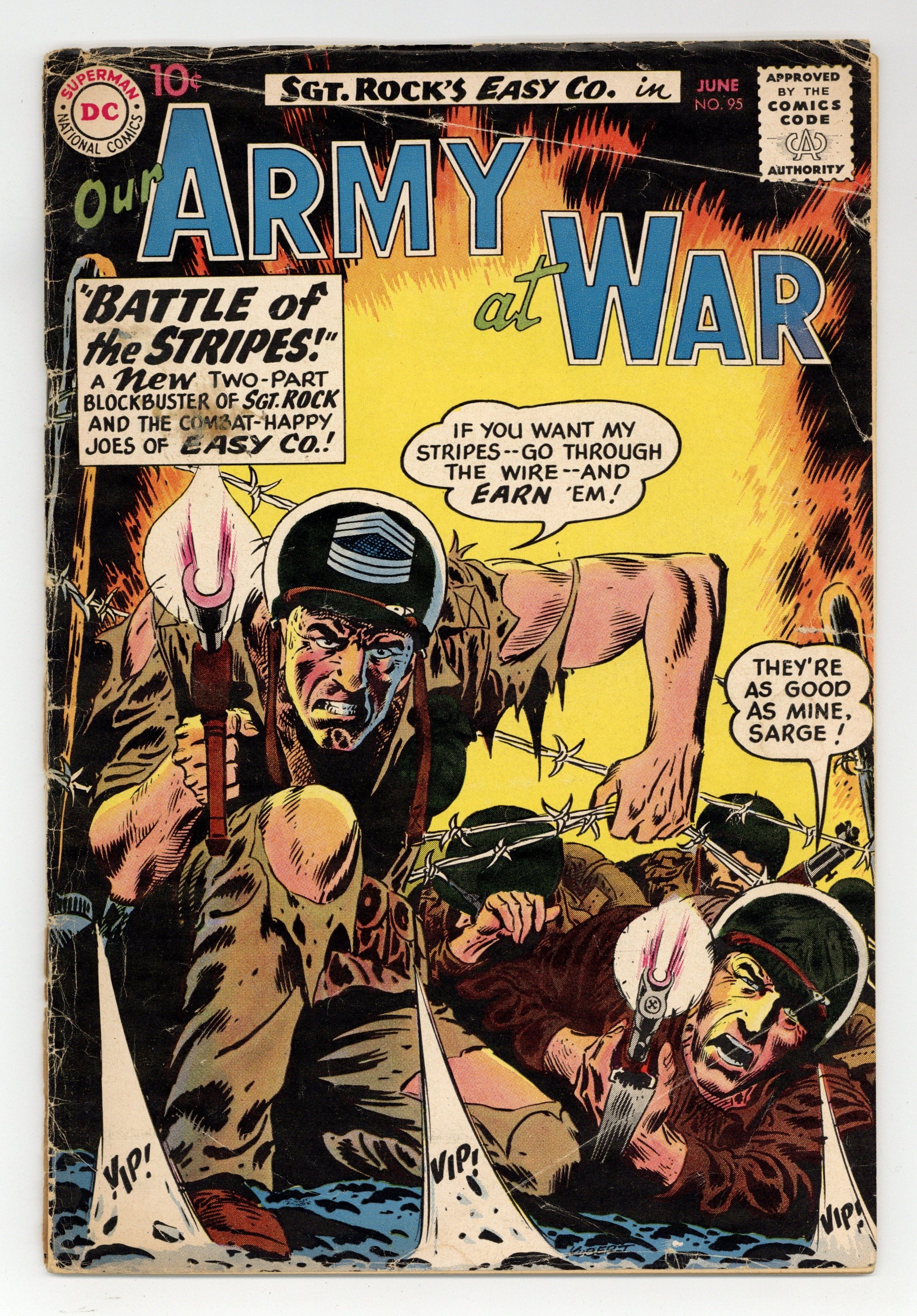 Cover art by Joe Kubert. Battle of the Stripes starring Sgt Rock, script by Bob Kanigher, art by Joe Kubert. Crests of the Army! fact page. Topsy Turvy Fighters!, script by Bob Haney, art by Jack Abel. 3 Tanks to Tangu1, script by Hank Chapman, art by Russ Heath. 36 Pages, Full Color. Cover price $0.10.