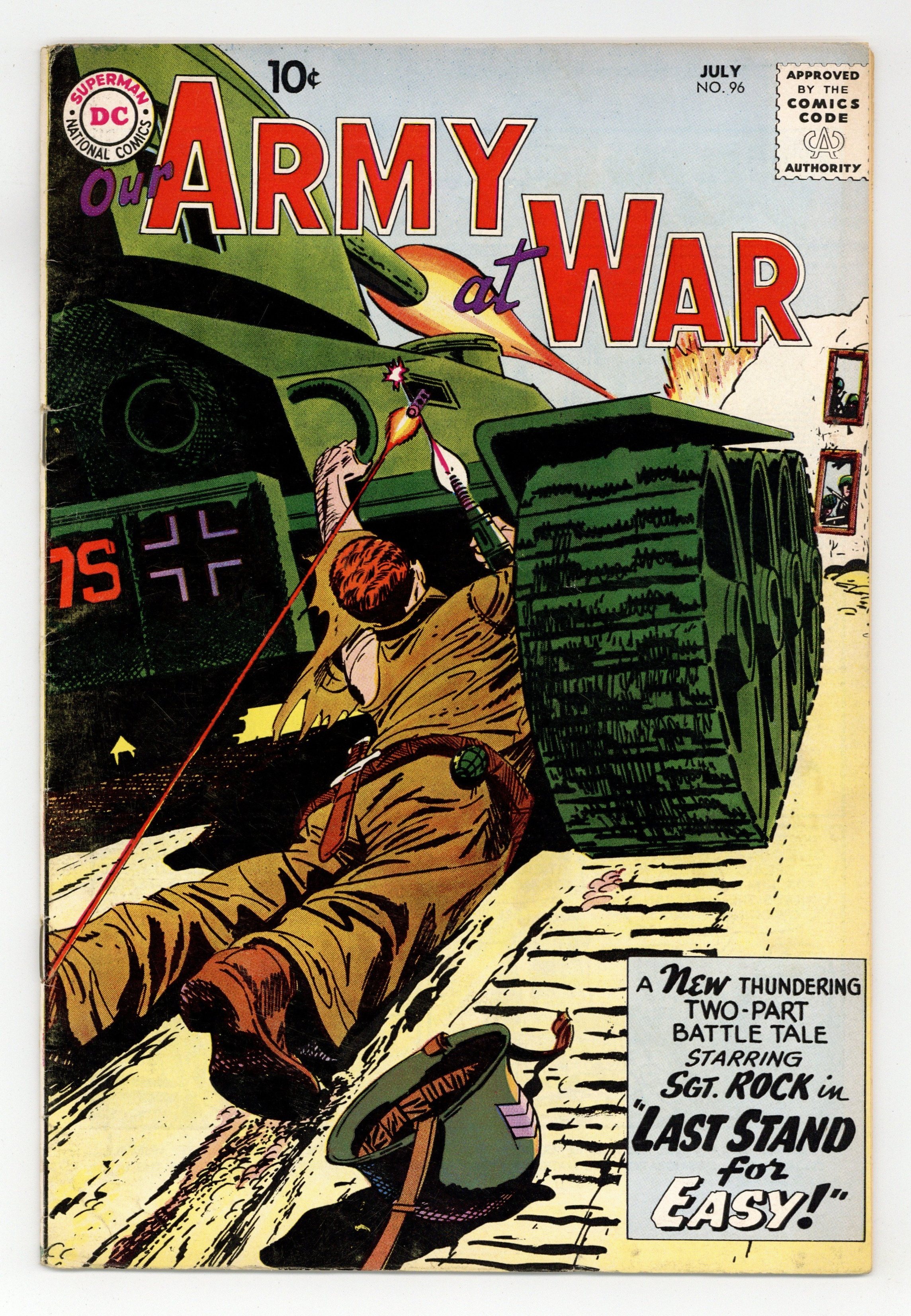Cover art by Jerry Grandenetti. Last Stand For Easy starring Sgt. Rock, script by Bob Kanigher, art by Joe Kubert. Bring Back Your Ship, script by Bob Haney, pencils by Ross Andru, inks by Mike Esposito. Two Men--One Hill, script by Bob Haney, art by Mort Drucker. 36 Pages, Full Color. Cover price $0.10.