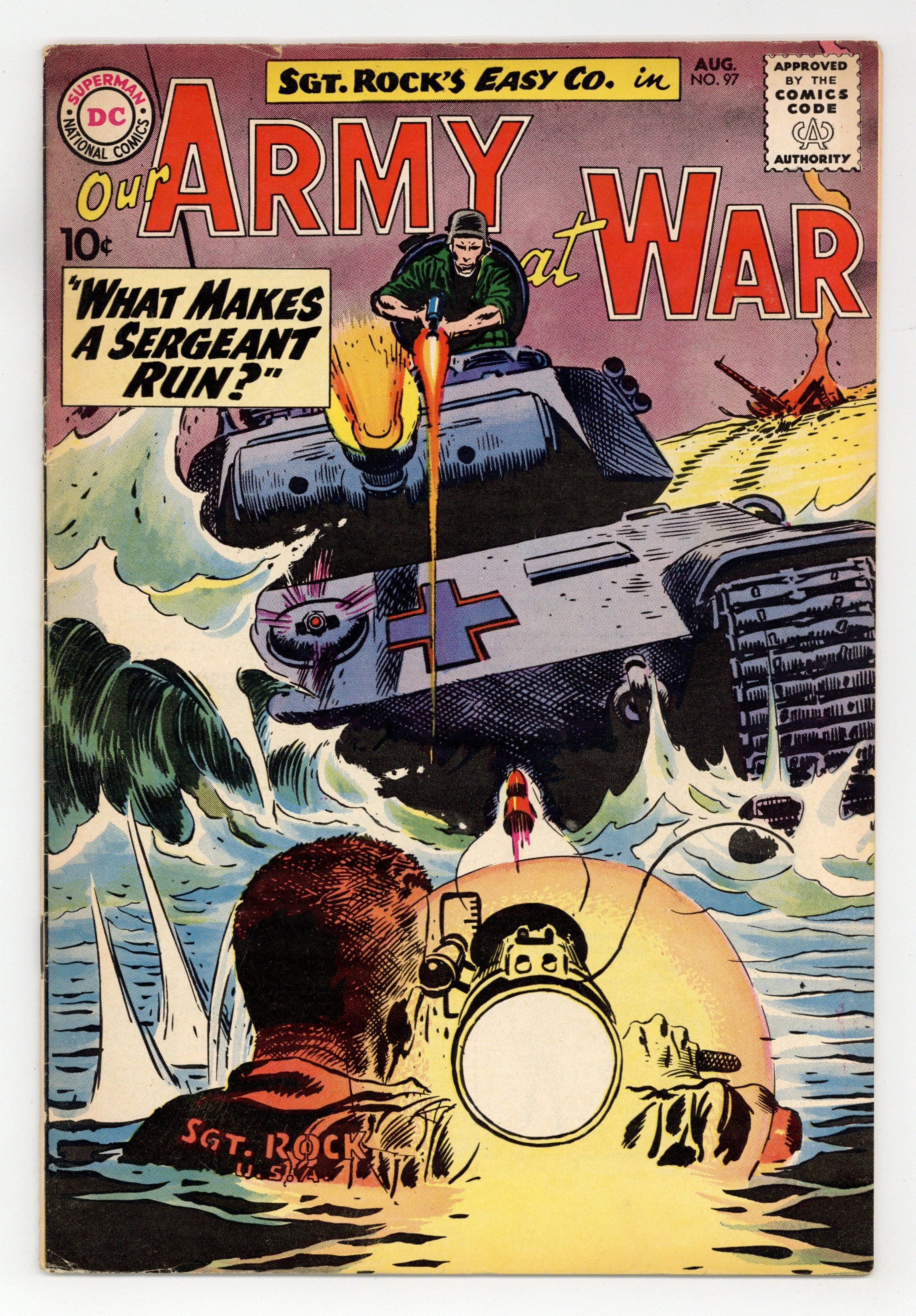 Cover art by Joe Kubert. What Makes a Sergeant Run? starring Sgt. Rock, script by Bob Kanigher, art by Joe Kubert. Secret of the Ace's Helmet, script by Bob Haney, pencils by Ross Andru, inks by Mike Esposito. You Can't Borrow A Star, script by Bob Haney, art by Jack Abel. 36 Pages, Full Color. Cover price $0.10.