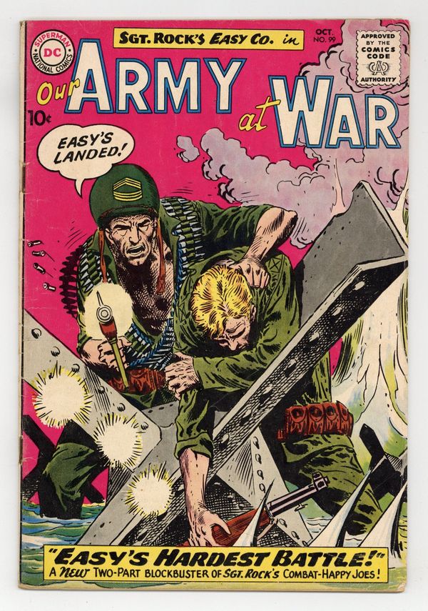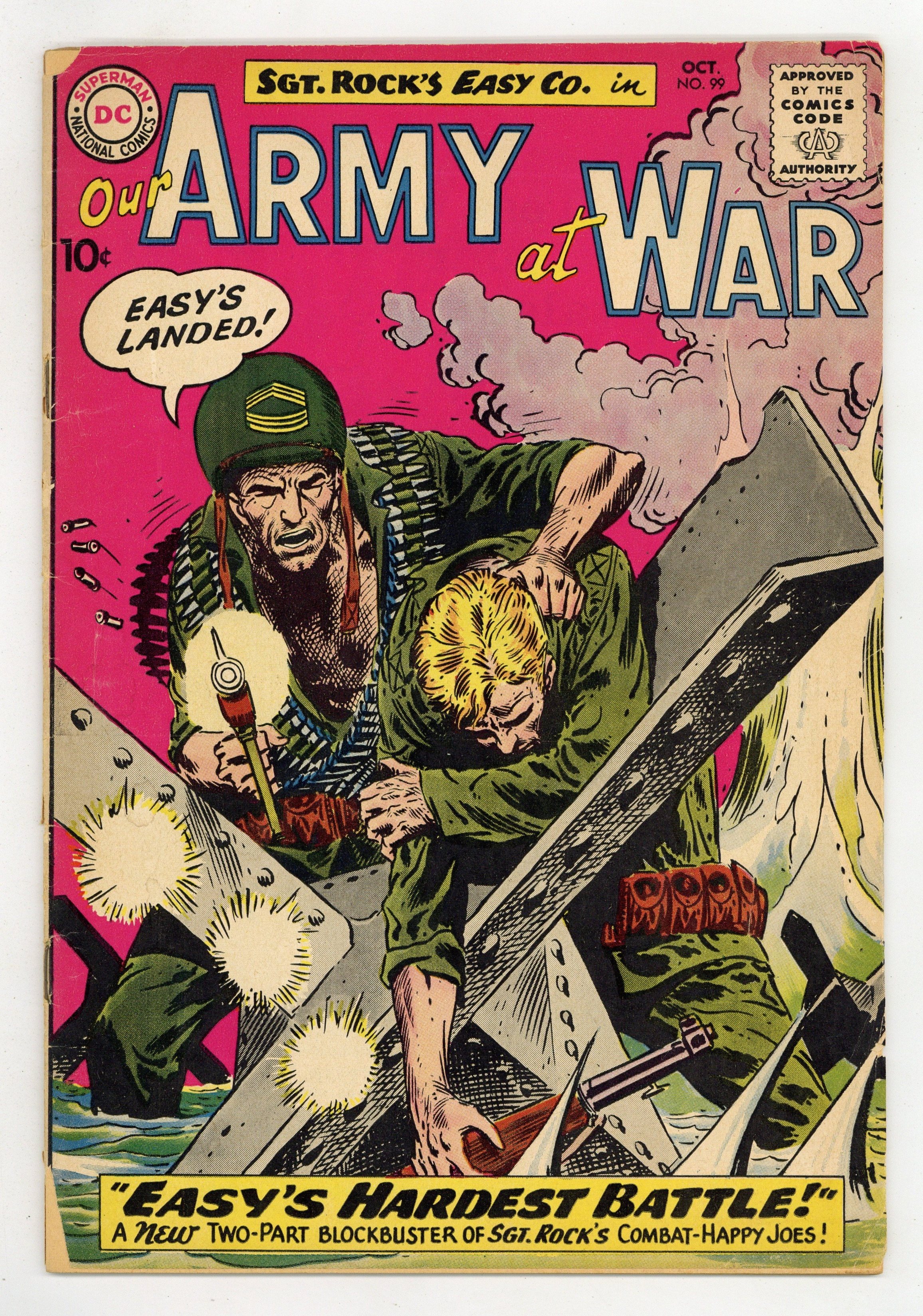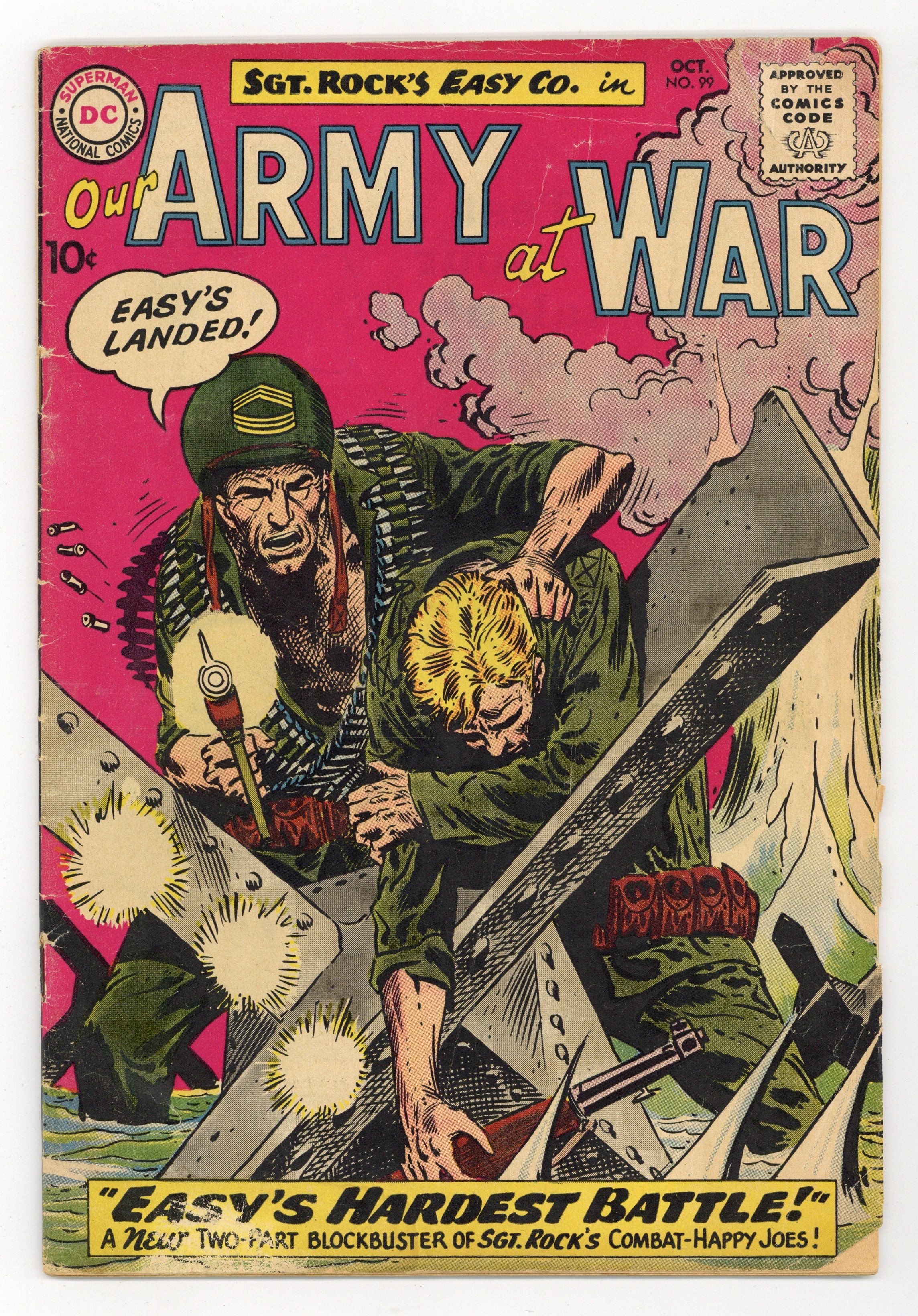 Cover art by Joe Kubert. Easy's Hardest Battle starring Sgt. Rock, script by Bob Kanigher, art by Joe Kubert. We're Still Flying, script by Bob Haney, pencils by Ross Andru, inks by Mike Esposito. Booby-Trap Tank, script by Bob Haney, art by Jack Abel. 36 Pages, Full Color. Cover price $0.10.
