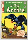 Cover art by Dexter Taylor. The Visit, script and art by Dexter Taylor; Little Archie gets a visit from his rural cousin, Andy Andrews. The Giant Bird, script and pencils by Dexter Taylor; Little Archie and Jughead encounter a monster-sized bird. The Vanishing Cat!, script and art by Bob Bolling; Polly leaves Betty behind when she goes to see the new pop sensation the Blemishes, but cat-loving Betty is determined to see the prize Burmese cat owned by the group's lead singer. Indian Army Scouts article. The Small Toreador starring Little Archie Andrews, script and art by Dexter Taylor. 68 pgs. $0.25. Cover price $0.25.
