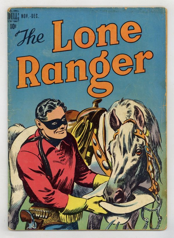 The Lone Ranger and the 'Skeleton', script by Fran Striker, art by Charles Flanders; "The Skeleton," a tall bony figure, seeks revenge on Mr. Harding, who has gone west to build a railroad. Based on the popular Western TV series. 52 pages, full color. Cover price $0.10.