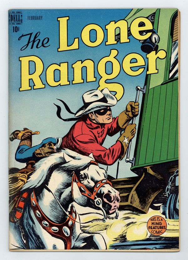 Promo for subscriptions to Dells Lone Ranger comic. The Lone Ranger on the Trail of a Criminal, art by Charles Flanders; The Lone Ranger and Tonto trail the criminal, Higgins, from Texas to Montana. The Lone Ranger and the Secret Weapon, art by Charles Flanders; The Lone Ranger and Tonto take refuge from a blizzard, but find that the cabin is under siege by crooks who want a trapper's furs. Lyrics to the traditional cowboy song "Git Along, Little Dogies" with illustrations. Wild Bill Hickok and the Texas Badman article. Facts about Indian boats. Based on the popular Western TV series. 52 pages, full color. Cover price $0.10.