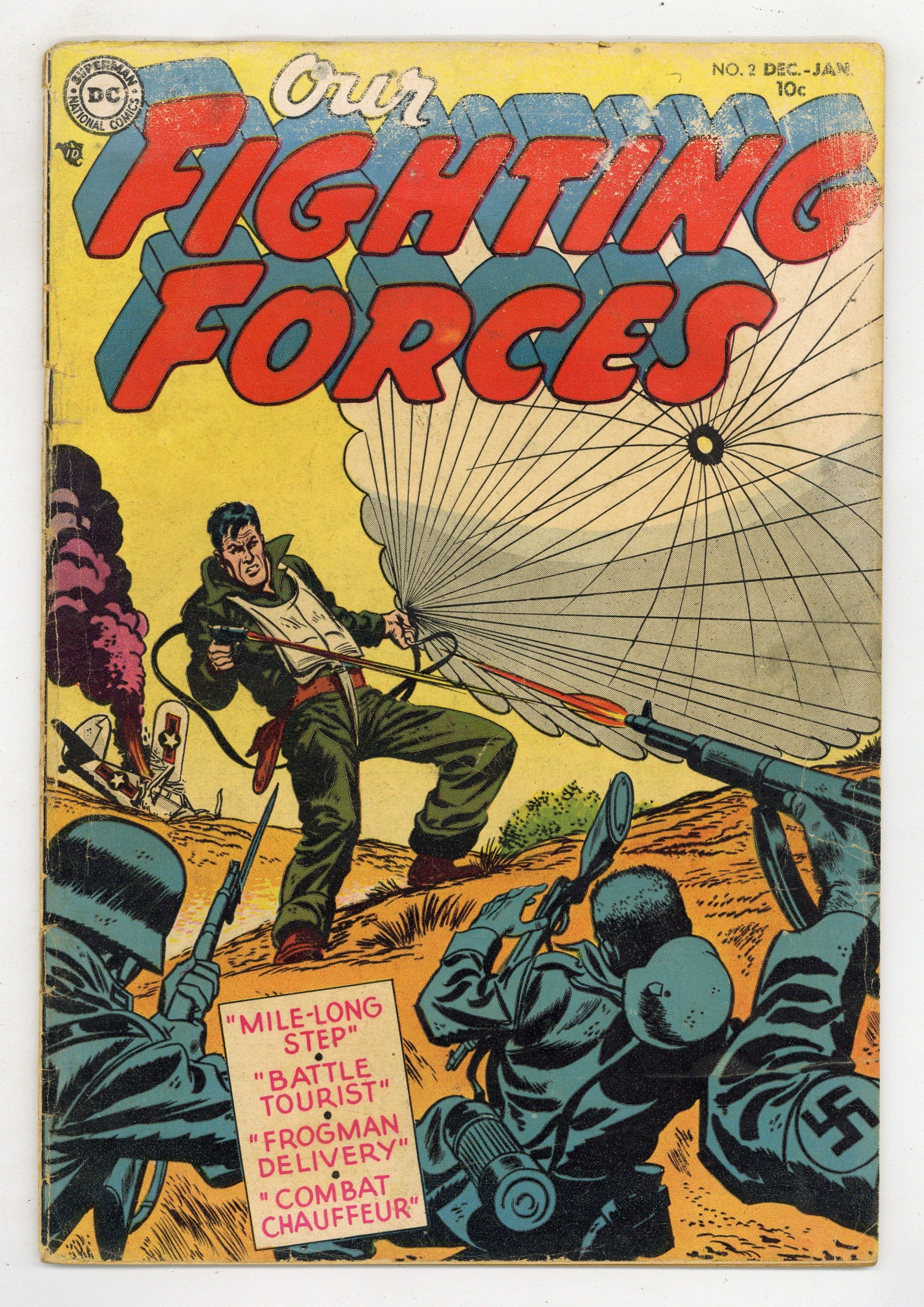 Cover by Irv Novick. Stories by John Reed, David Kahn, Robert Kanigher and Ed Herron. Art by Jerry Grandenetti, Russ Heath, Ross Andru, Irv Novick and Mike Esposito. Action-packed battle tales! In this issue: "Mile-Long Step!" by John Reed and Jerry Grandenetti; "Frogman Delivery" by David Kahn and Russ Heath; "Combat Chauffeur!" by Robert Kanigher, Ross Andru and Mike Esposito; and "Battle Tourist!" by Ed Herron and Irv Novick. Plus: 2-page text article "The Navy in the Sky"; Shorty 1-pager by Henry Boltinoff; and Private Diary 1-pager by Irwin Hasen. 36 Pages, Full Color. Cover price $0.10.