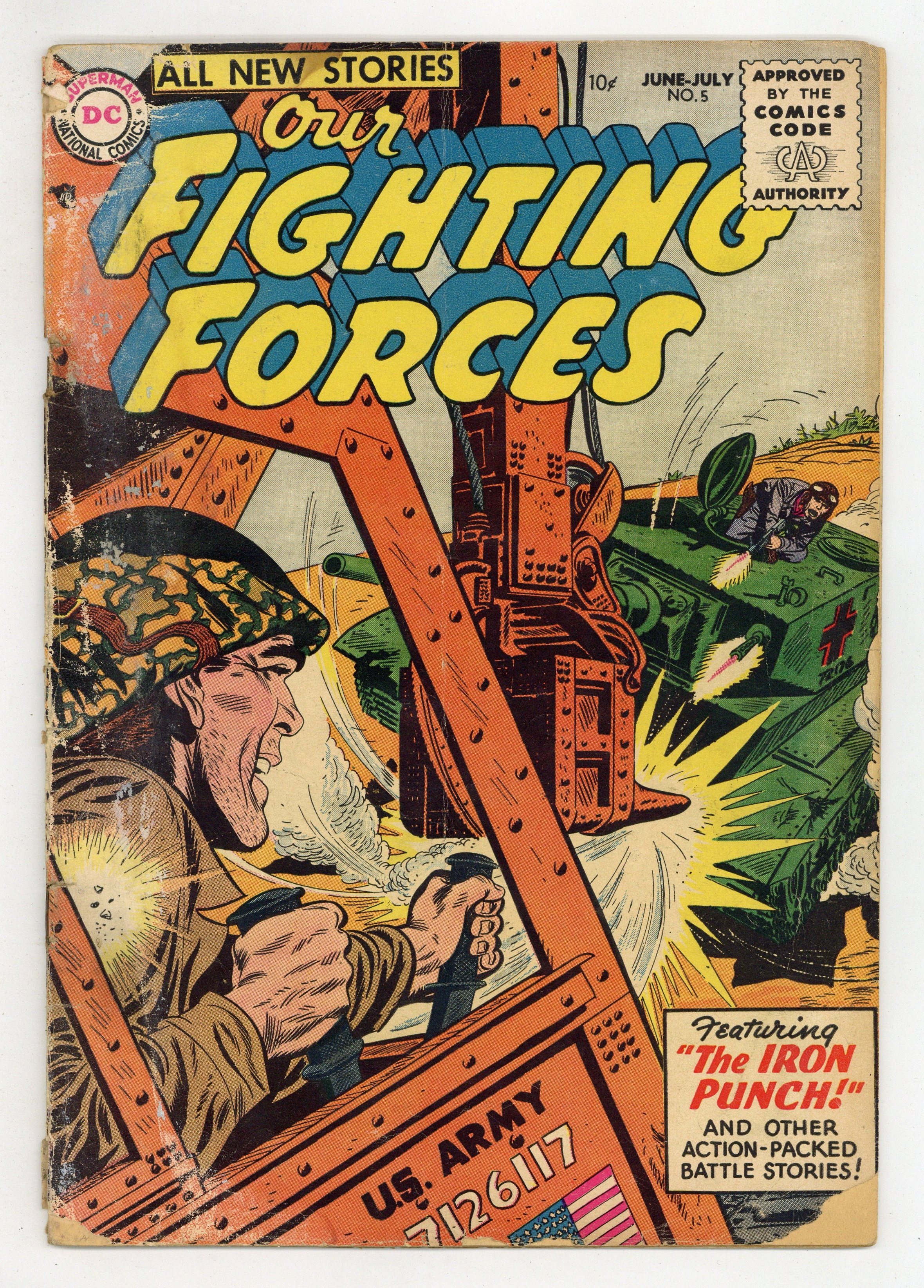 Cover by Jerry Grandenetti. Stories by Ed Herron and John Reed. Art by Arthur Peddy, Sam Burlockoff, Ross Andru, Irv Novick, Joe Giella and Mike Esposito. Action-packed battle tales! In this issue: "The Iron Punch!" by Ed Herron and Arthur Peddy; "The Tortoise and the Hare Went to War!" by John Reed, Sam Burlockoff and Joe Giella; "A Flower for the Front" by Herron, Ross Andru and Mike Esposito; and "G.I. Model!" by Reed and Irv Novick. Plus: 2-page text article "Fantastic Sea Fortress"; General Little 1-pager by Irwin Hasen; Shorty 1-pager by Henry Boltinoff; Private Diary 1-pager by Hasen; and Private Pete 1-pager by Boltinoff. 36 Pages, Full Color. Cover price $0.10.