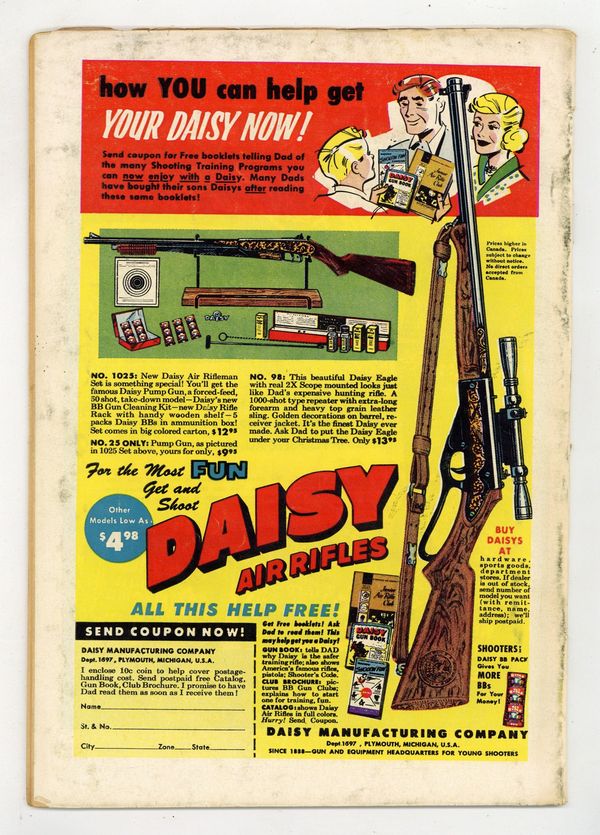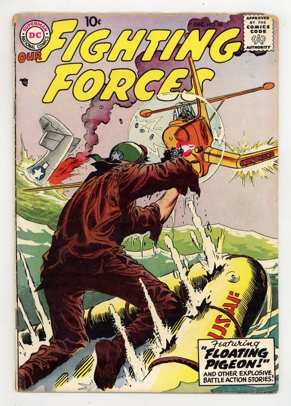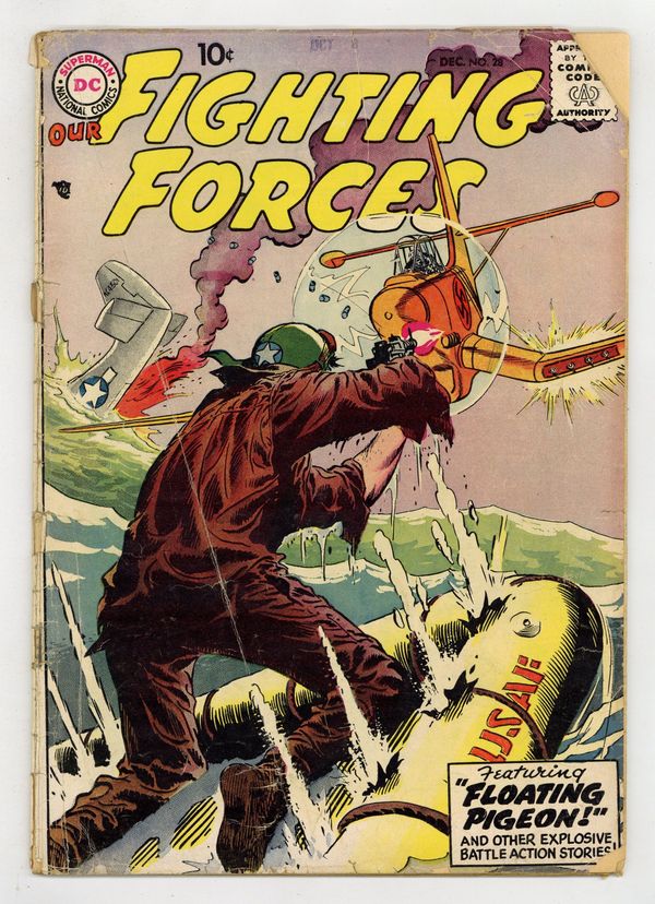 Cover by Joe Kubert. Stories by Ed Herron, Bob Haney and Robert Kanigher. Art by Russ Heath, Mort Drucker, Carmine Infantino, Ross Andru, Frank Giacoia and Mike Esposito. Explosive battle action tales! In this issue: "All Quiet at C.P.!" by Ed Herron and Russ Heath; "Private Battlefield!" by Herron and Mort Drucker; "Pressure Point!" by Bob Haney, Carmine Infantino and Frank Giacoia; and "Floating Pigeon!" by Robert Kanigher, Ross Andru and Mike Esposito. Plus: 1-page story "Do Not Touch Me!"; Army Slang! 1-pager; and Private Pete 1-pager by Henry Boltinoff, reprinted from Star Spangled War Stories (1952 DC #3-204) #8. 36 Pages, Full Color. Cover price $0.10.