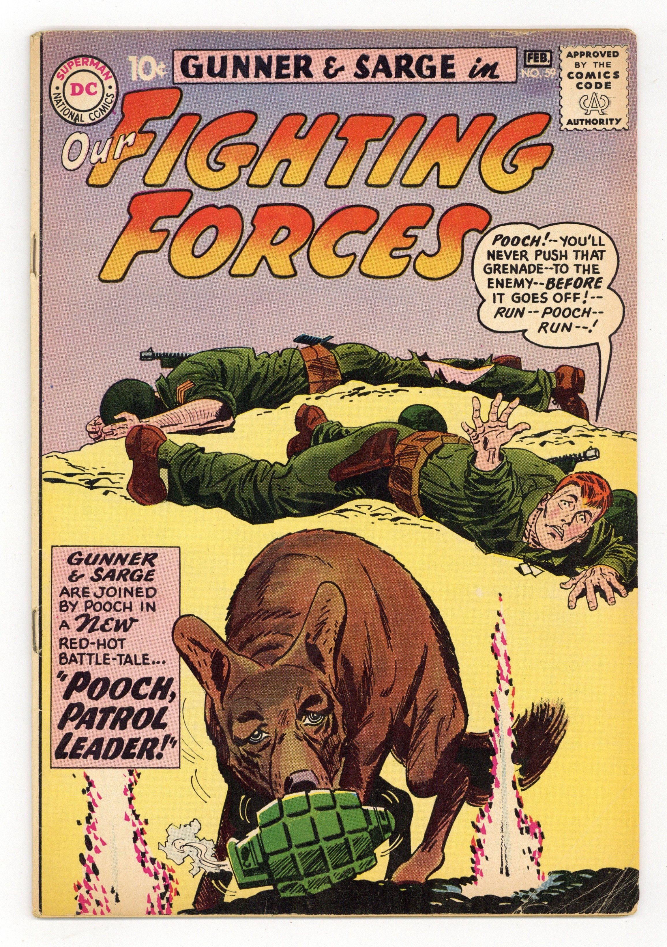 Gunner and Sarge in "Pooch--Patrol Leader!" Also "No Place To Land" (art by Russ Heath) and "Beach Prize For a Frogman!" 36 Pages, Full Color. Cover price $0.10.