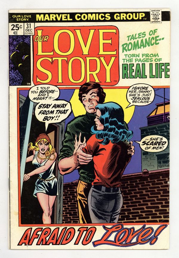 $15.50Cover pencils by Gene Colan. Running for Love!, script by Robert Kanigher, pencils by Kurt Schaffenberger, inks by Frank Giacoia. My Lips Are Yours, script by Stan Lee, pencils by Gene Colan. I Failed At Love!, script by Steve Englehart (as Anne Spencer), pencils by Syd Shores, inks by Jack Abel. 36 pgs. $0.25. Cover price $0.25.