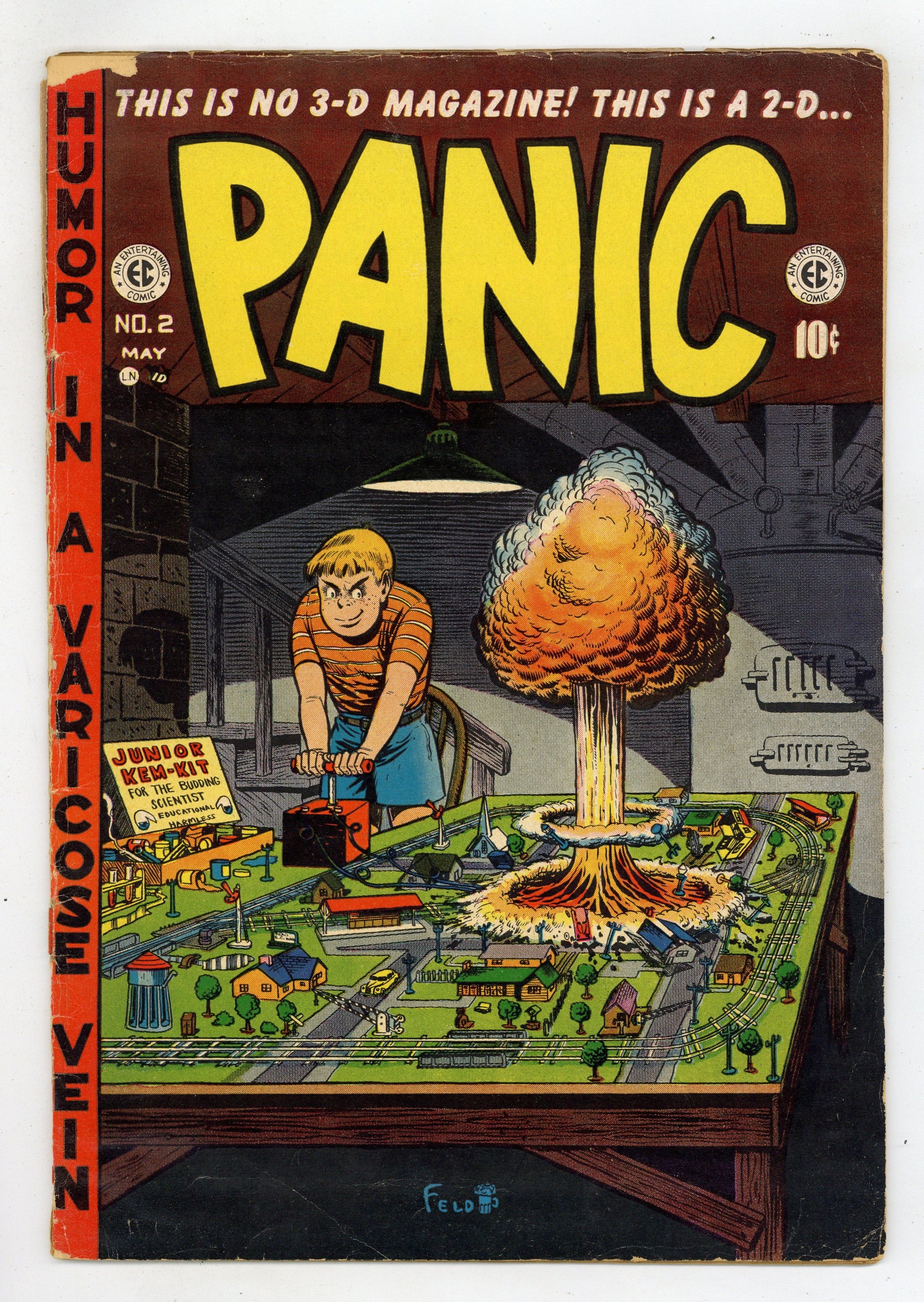 Cover by Al Feldstein. Stories by Al Feldstein. Art by Bill Elder, Jack Davis, Wally Wood, Marie Severin and Joe Orlando. A Mad-like satire comic edited by future Mad editor Al Feldstein, and published by Mad's publisher, EC Comics. A parody of 1950s stage drama, including "A Streetcar Named Desire," "Come Back Little Sheba," and "Death of a Salesman," with art by MAD legend Jack Davis. A spoof of the classic film "The African Queen" with art by comics legend Wally Wood. A parody of the short story "The Lady or the Tiger?" with art by MAD legend Will Elder (plus a Basil Wolverton cameo). African Scream; The Lady or the Tiger?; Breakfast with the Fershlugginers; Come Back Little Street Car! 32 pages, Full Color. Cover price $0.10.