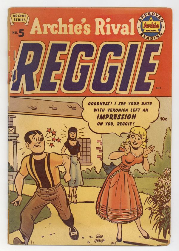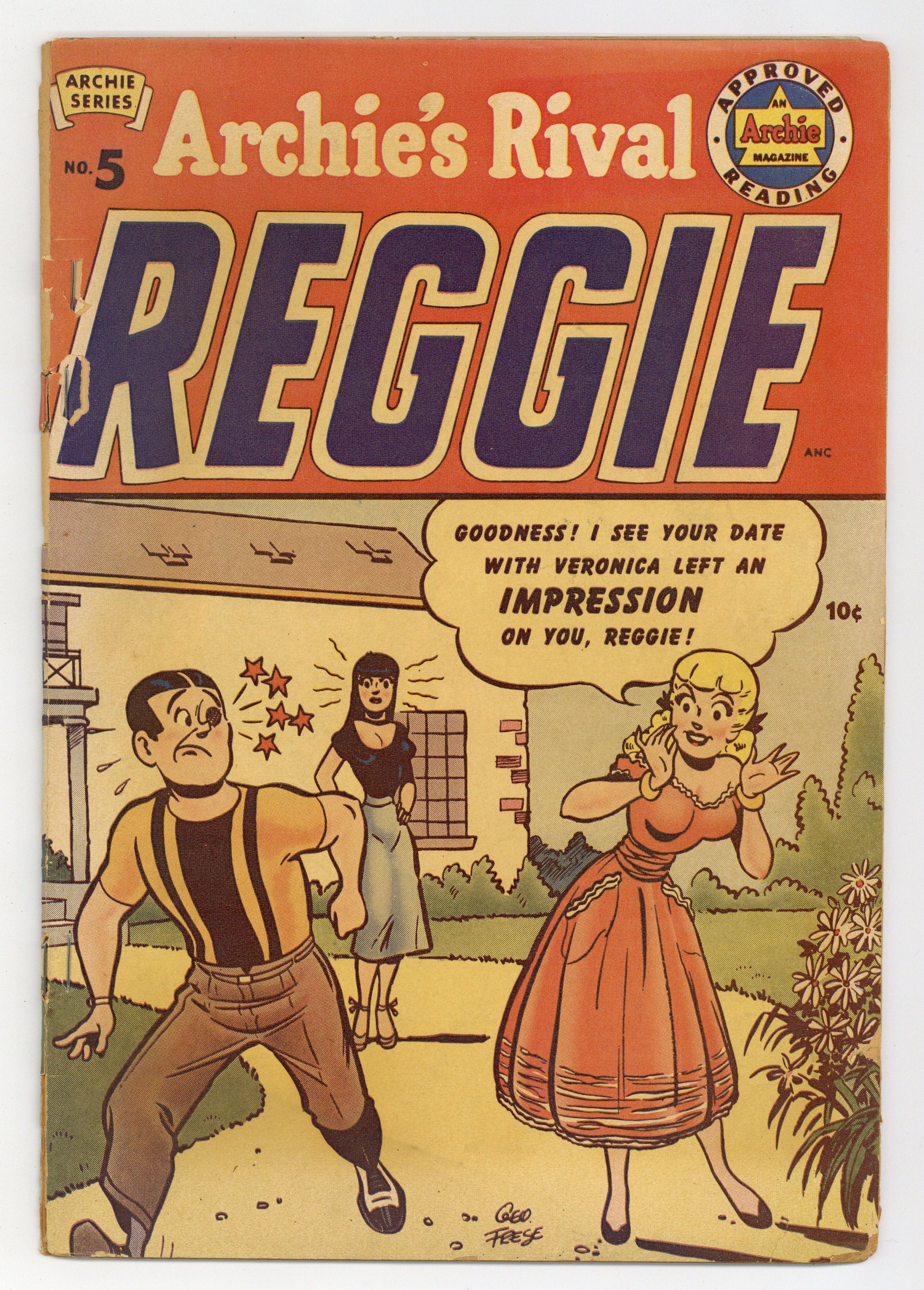 Cover art by George Frese. "The Square Circle"; Jughead takes up embroidery and all the guys laugh at him but all the girls want to spend time with him. "Soul Mates!"; In order to find out who was responsible Mr. Weatherbee has Reggie make a cast of the impression of a foot print left outside the window and has all the boys place their foot against it. Reggie Says page on safe sledding. "Gone to Pot"; Reggie plays a prank on Miss Grundy by swapping out her potted geranium with a larger one from his mother's garden. "Drawing the Head" activity page; Practice drawing differently shaped faces. "Pie Alum Mode"; Reggie puts alum on Jughead's pie but Jughead switches it with Reggie's pie when he's not looking. "Ice Cream You Scream"; Reggie convinces Veronica to leave her little cousin at the house while she goes out with him to get an ice cream soda. 36 pgs., full color. Cover price $0.10.
