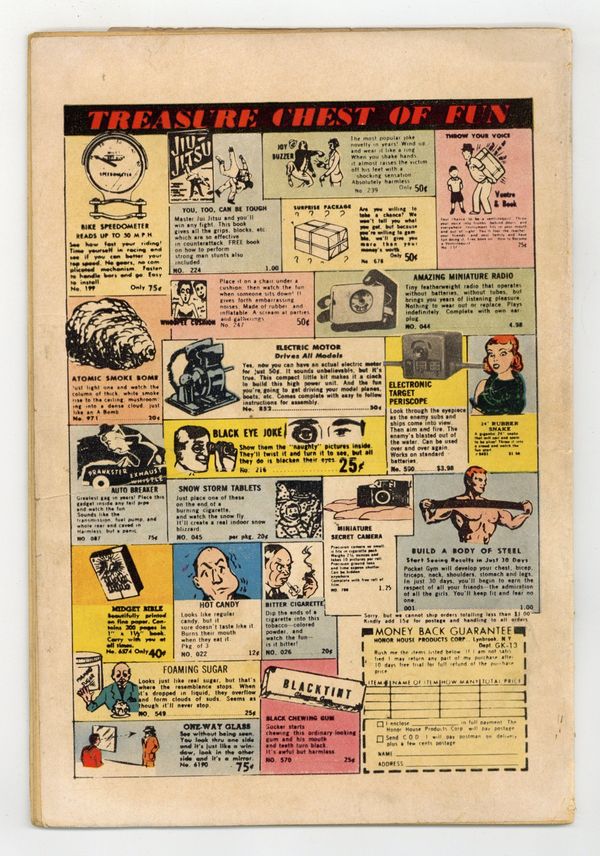 Published Jun 1961 by Charlton Publishing.$26.00- Cover & centerfold detached at one staple. 1/2" Spine split from top. Staple rust/deterioration.