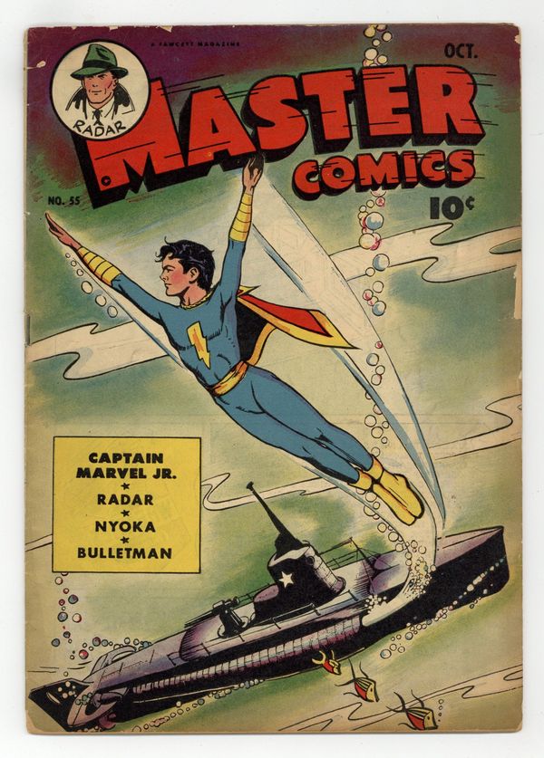 The Unrelated Triplets starring Radar, art by Al Carreno. The Tattooed Man starring Bulletman, the Flying Detective, script by Otto Binder, art by Harry Anderson; Jim Barr is ordered to protect Tattoo Tony from harm by other criminals, unaware that he is actually the situation to recover some stolen loot. The Python Peril starring Nyoka, art by Jack Sparling. Hoodoo Hannigan: Ch. 27: Rats Must Die text story by Joseph J. Millard. Sivana's India Rubber Man starring Captain Marvel, Jr., art by August Froehlich. 36 Pages, Full Color. Cover price $0.10.