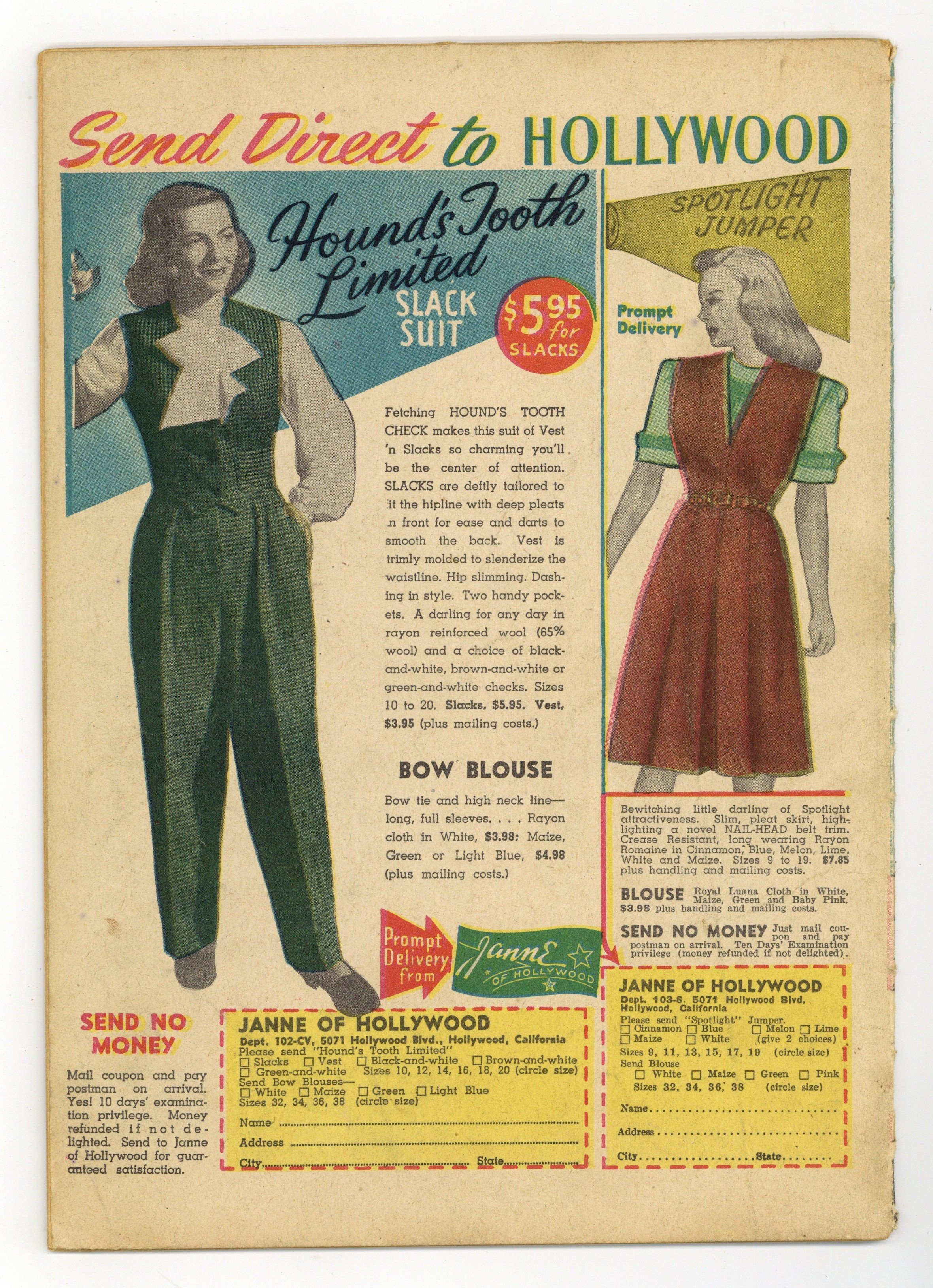 Cover by Bud Thompson. Stories and art by Otto Binder, Bud Thompson, Harry Anderson, and Al Carreno. Fawcett's showcase for comics covers the humor, Western, adventure and superhero genres, featuring Captain Marvel Jr., Bulletman and Bulletgirl. When neo-Nazis are sprung from prison, Radar is on the case. Nyoka may be trapped in quicksand, but luckily Larry is even quicker, chopping down an entire tree to save her. When criminals change their faces and fingerprints to escape justice, Bulletman and Bulletgirl realize mad plastic surgeon Dr. Carver must be back in town. Plus a vintage comics-format ad for Grape Nuts featuring Volto, the magnetic man from Mars. Radar: The Trail of Trouble; Nyoka, the Jungle Girl: The Mysterious Secret; Bulletman: The Return of Doctor Carver; General Sakamoto and the Goats; Captain Marvel, Jr.: The Secret of the Sphinx. 32 pages, Full Color. Cover price $0.10.