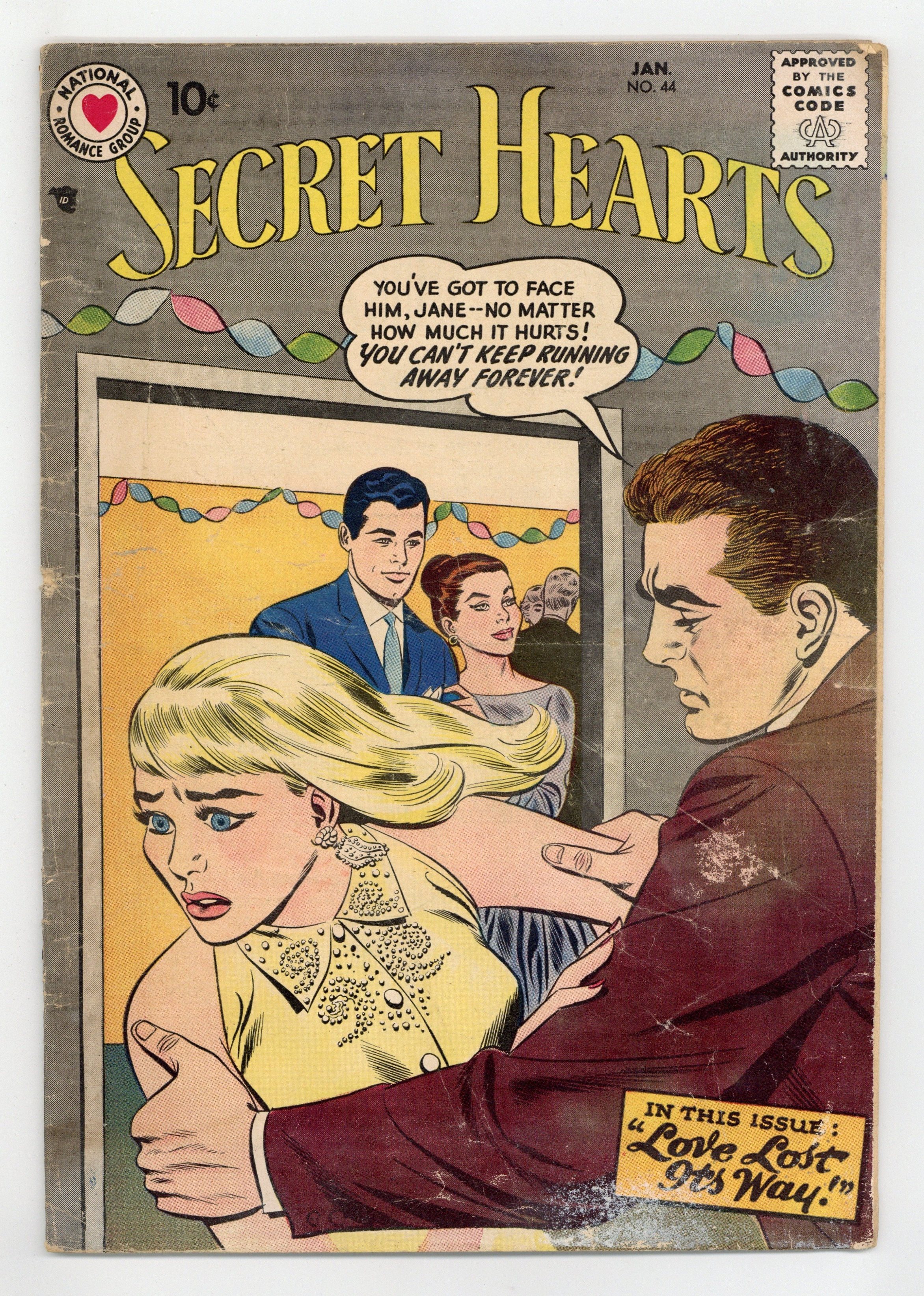 Stories by unknown. Art by Mike Sekowsky, Bernard Sachs and unknown. Judy and her friend Phyllis reconcile after a long estrangement, then Judy finds herself attracted to Phyllis's new boyfriend in "Winter in My Heart!" Plus: Jane has got to face him...no matter how much it hurts! She can't keep running away forever! Read..."Love Lost Its Way"! Also featuring "Sweetheart's Rose" and "Tomorrow is Never"! Plus: Carol in a 1-page reprint story. And: Letters page by Ann Martin, Counselor-at-Love. 32 pages, full color. Cover price $0.10.