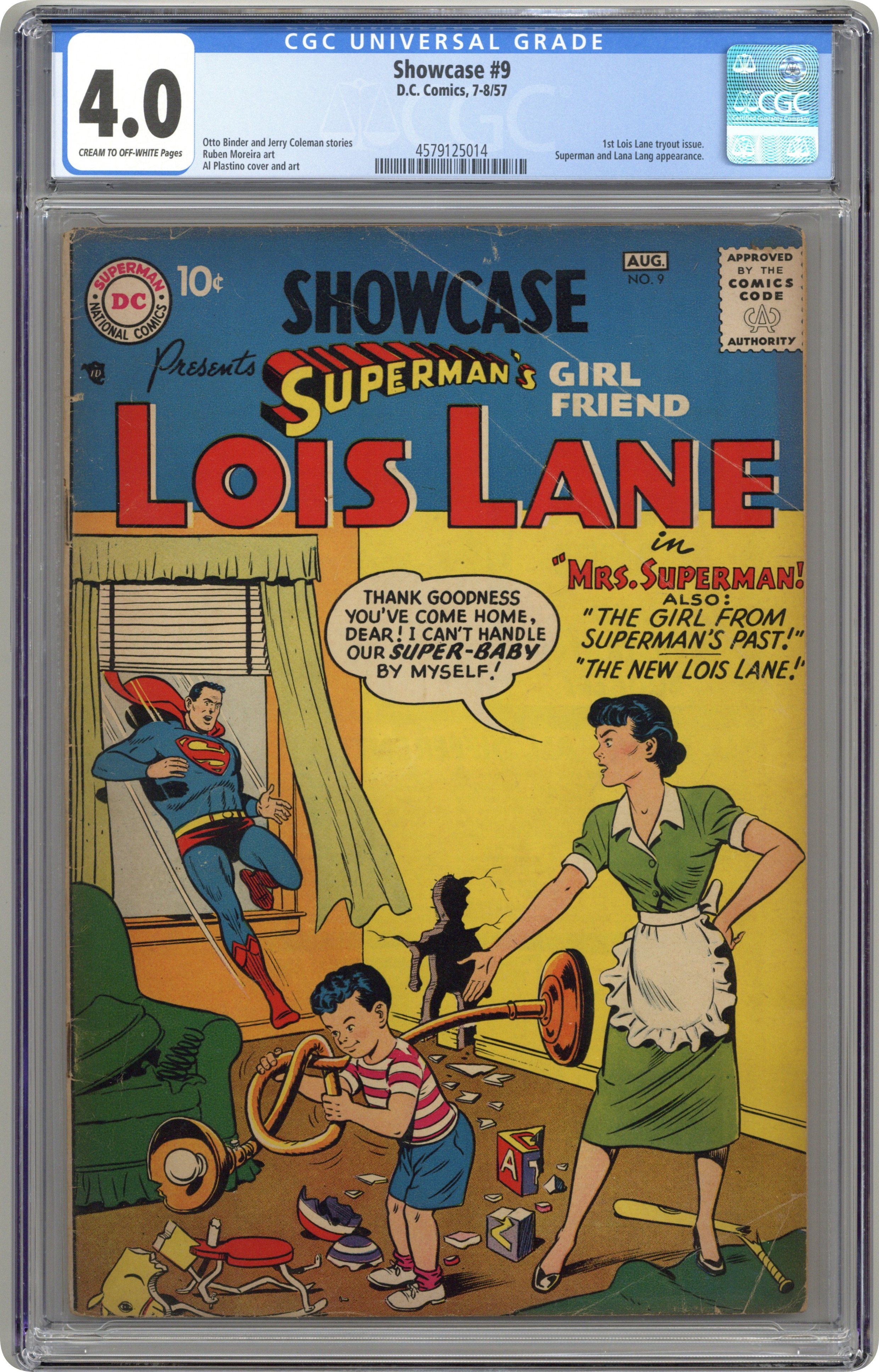 Cover art by Al Plastino. The Girl in Superman's Past, script by Jerry Coleman, art by Al Plastino; Lois meets Lana Lang for the first time, and the girls immediately compete to see whom Superman likes better, but Superman refuses to fall into their traps. The New Lois Lane, script by Otto Binder, pencils by Ruben Moreira, inks by Al Plastino; Superman hopes that Lois' constant snooping to find his identity will provide evidence to convince "Con" Conners that he is wrong in believing that Clark Kent is Superman. Sleuths In Skirts article. Mrs Superman, script by Otto Binder, art by Al Plastino; Lois dreams she's married to Superman. 36 Pages, Full Color. Cover price $0.10.