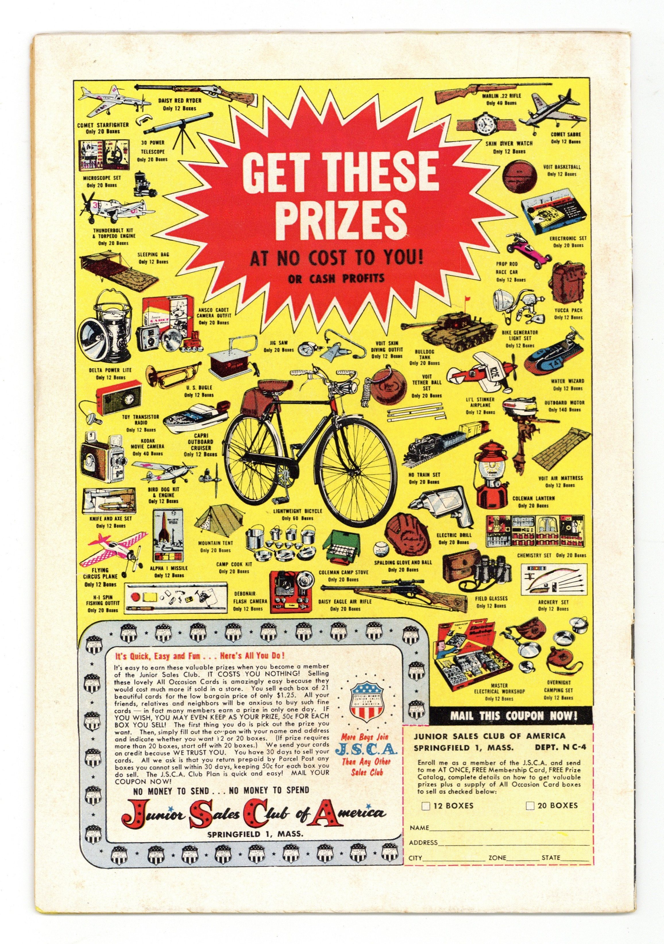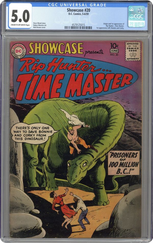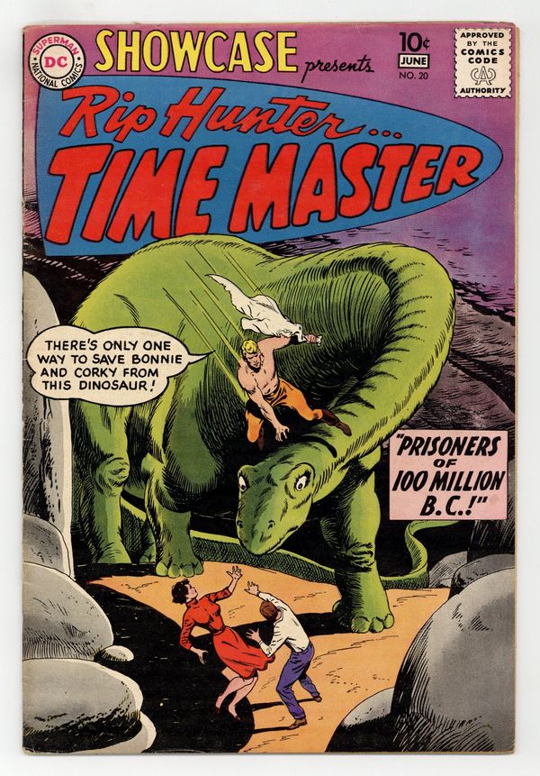Cover art by Bob Brown. Prisoners of 100 Million B.C. featuring the origin and first appearance of Rip Hunter...Time Master, script by Jack Miller, art by Ruben Moreira; Having finished work on Time Sphere II, Rip Hunter and Jeff Smith do a test run back to the mesozoic era; Meanwhile, in the present day, crooks force Bonnie Baxter and her brother Corky to take them to Rip and Jeff in Time Sphere I; Meeting in the past, the crooks have the drop on Rip and crew, until battling dinosaurs separate the good guys from the bad; But when the heroes get back to their Time Sphere, they find it's gone missing. Do You Make Life Hard for Yourself? public service announcement, script by Jack Schiff, art by Bernard Baily. 36 Pages, Full Color. Cover price $0.10.