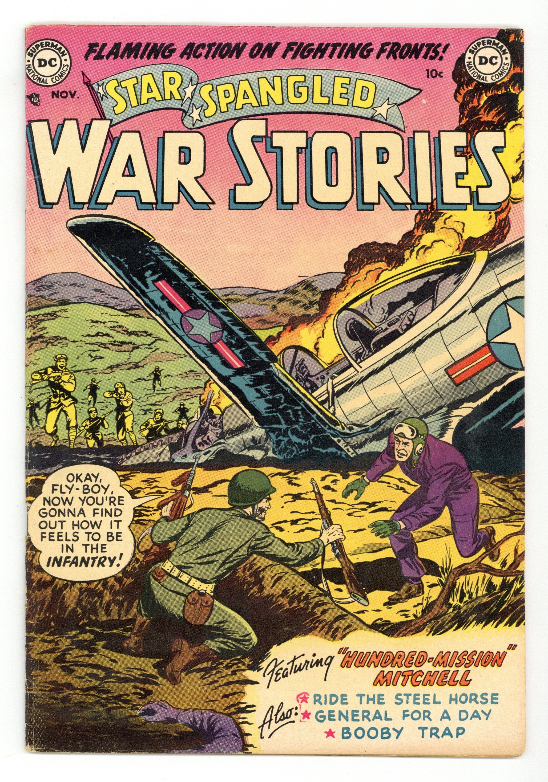 Cover pencils by Curt Swan, inks by Stan Kaye. Hundred-Mission Mitchell, pencils by Curt Swan, inks by Stan Kaye. Ride the Steel Horse, art by Bob Brown. General For A Day, art by Jerry Grandenetti. Booby Trap, art by Ramona Fradon. Capt. Jack Marston text story by Jack Miller. Private Pete humor page by Henry Boltinoff. 36 Pages, Full Color. Cover price $0.10.