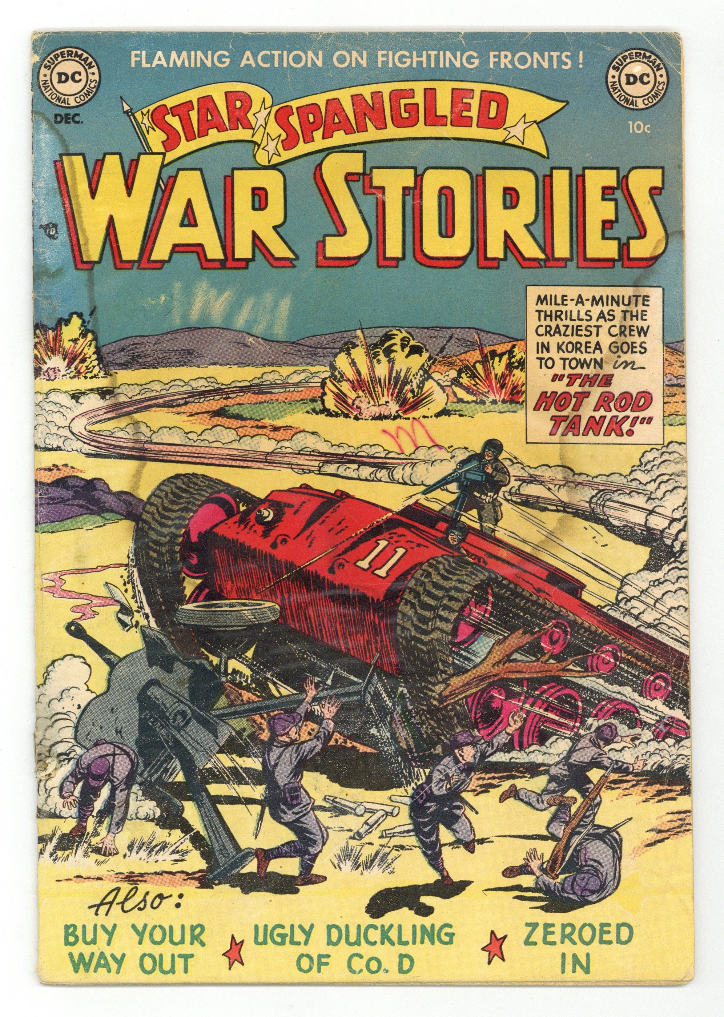 Pencils by Curt Swan, inks by Stan Kaye. The Hot Rod Tank, pencils by Curt Swan, inks by Stan Kaye. Buy Your Way Out, art by Ed Smalle. The Ugly Duckling of Company D, pencils by Ramona Fradon, inks by Charles Paris. Zeroed In, art by Jim McArdle. Private Pete humor page by Henry Boltinoff. Shorty humor page by Henry Boltinoff. Capt. Jack Morton text story by Jack Miller. 36 Pages, Full Color. Cover price $0.10.
