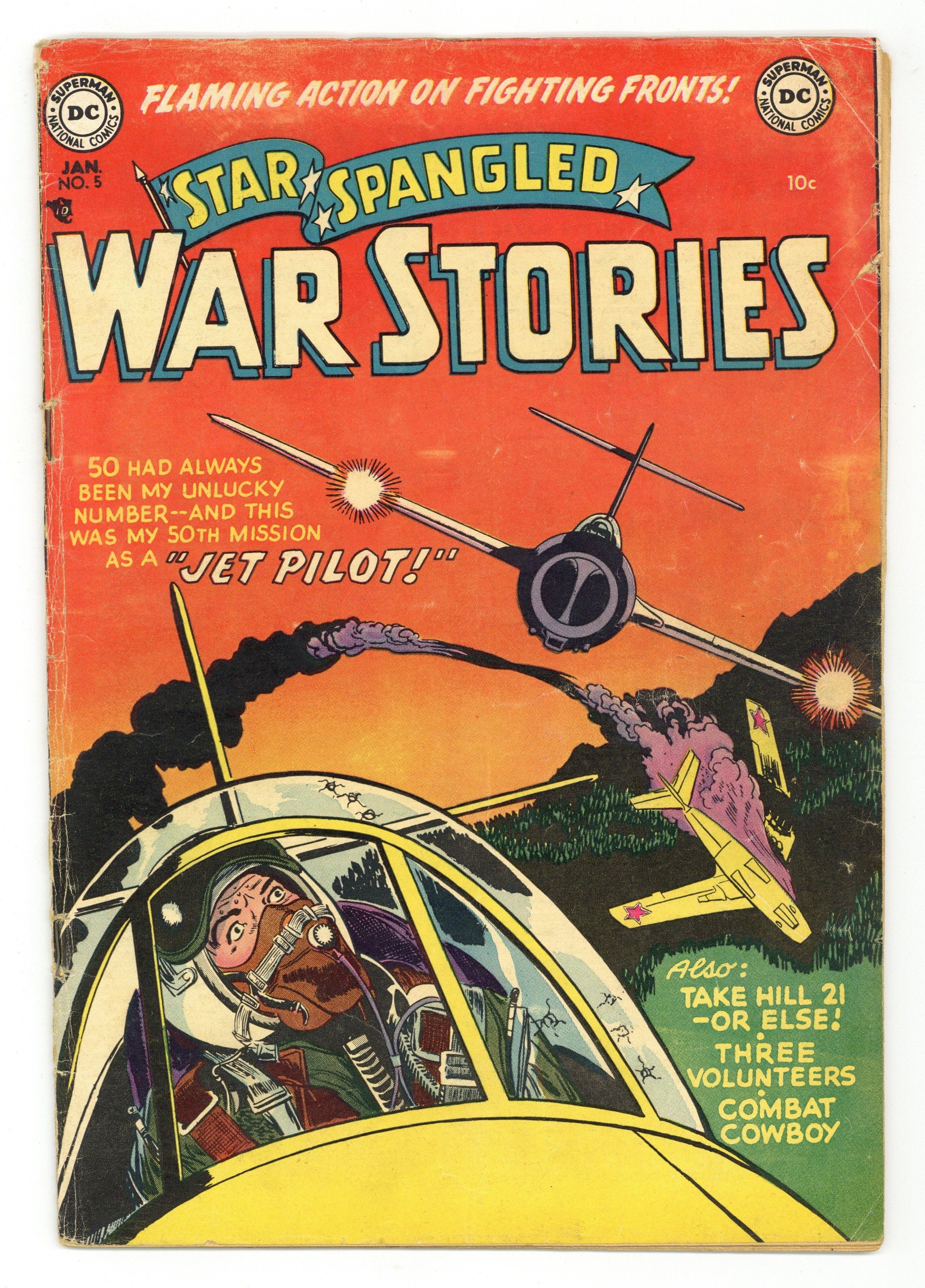 Cover art by Leonard Starr. Jet Pilot, art by Leonard Starr. Take Hill 21--Or Else, pencils by Curt Swan, inks by Stan Kaye. Combat Cowboy, pencils by Jerry Grandenetti, inks by Ray Burnley. Three Volunteers humor story, pencils by Curt Swan, inks by Stan Kaye. Capt. Jason Mallory text story by Jack Miller. 36 Pages, Full Color. Cover price $0.10.
