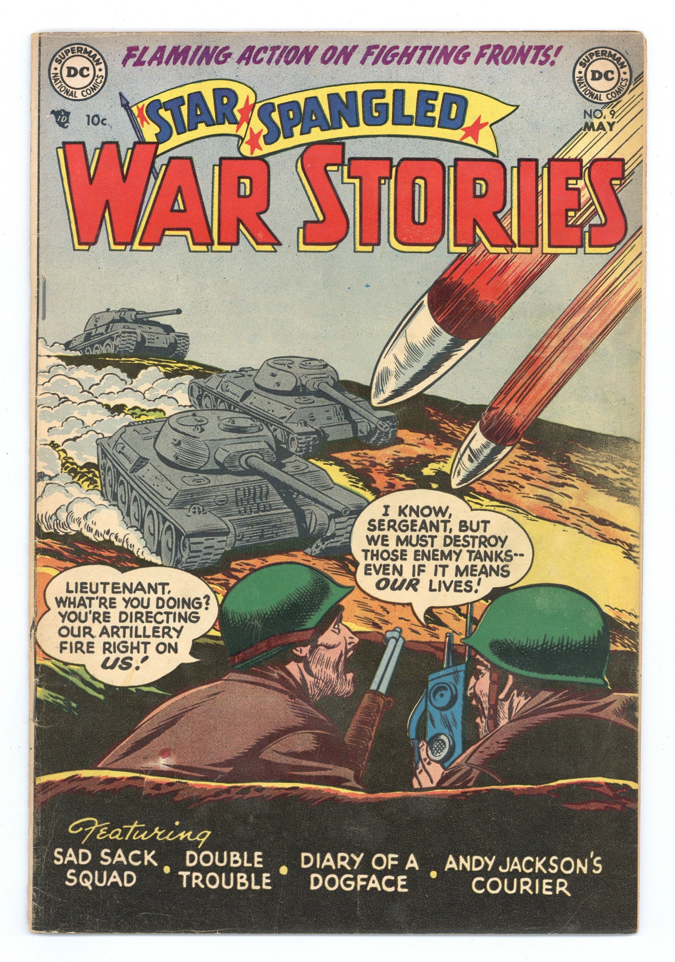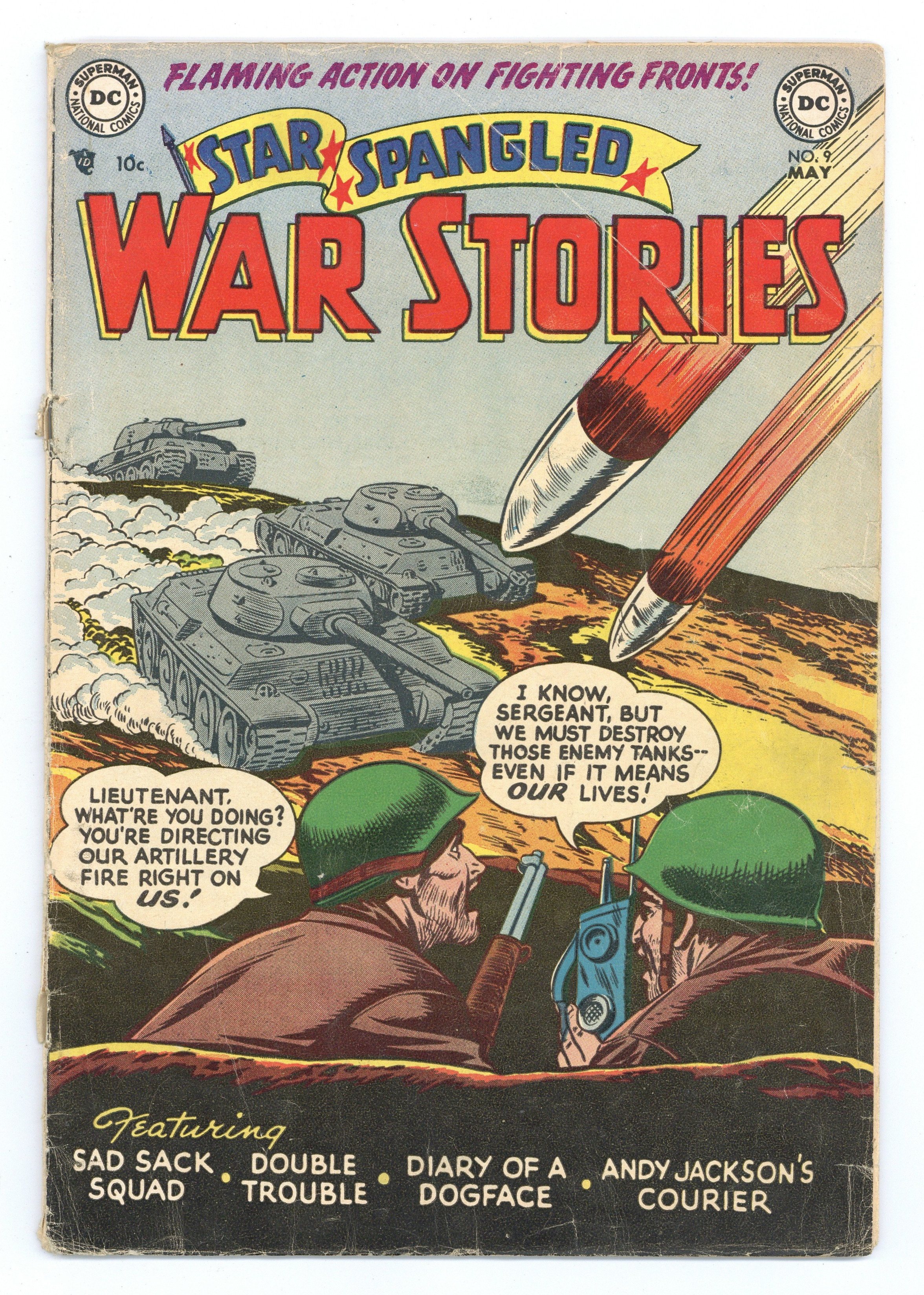 Cover pencils by Curt Swan, inks by Stan Kaye. The Sad Sack Squad, pencils by Curt Swan, inks by Ray Burnley. Diary of a Dogface, art by Jim McArdle. Andy Jackson's Courier, art by Fred Ray. Double Trouble, pencils by Jerry Grandenetti, inks by Ray Burnley. Private Pete filler page by Henry Boltinoff. Capt. Jeb Marston text article by Jack Miller. 36 Pages, Full Color. Cover price $0.10.