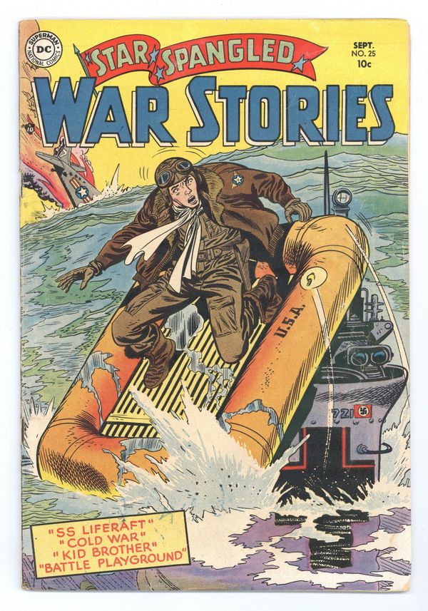 Cover art by Jerry Grandenetti. S.S. Liferaft, script by Robert Kanigher, art by Irv Novick. Battle Playground, script by France Herron, art by Arthur Peddy. Cold War, script by William Woolfolk, art by Mort Drucker. Kid Brother, script by France Herron, pencils by Carmine Infantino, inks by Joe Giella. 36 Pages, Full Color. Cover price $0.10.